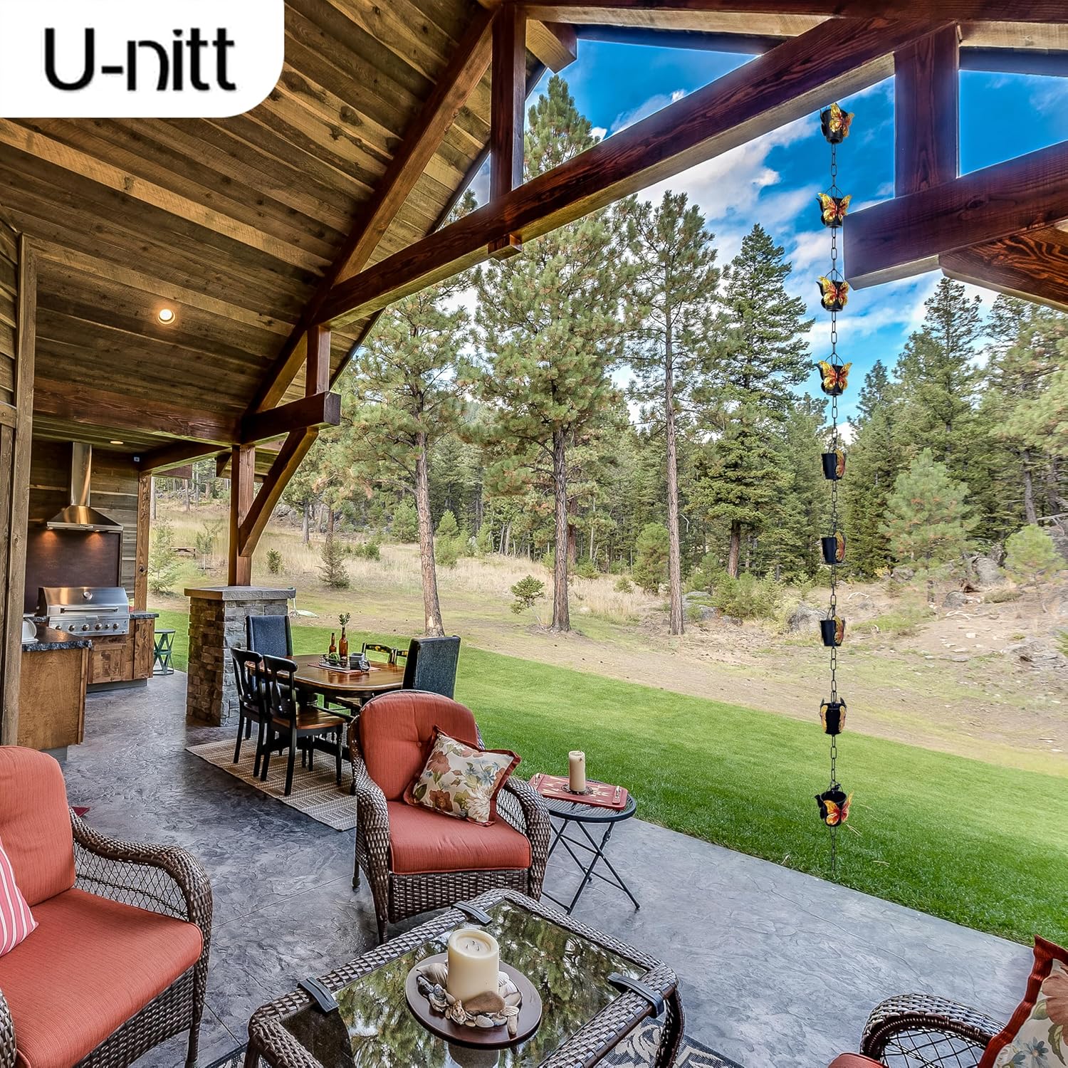 - SUPERIOR CRAFTSMANSHIP - is evident in every detail of this expertly designed U-nitt rain chain. Meticulously crafted from premium, heavy-duty materials, it offers both durability and elegance. Each link or cup is precision-shaped to ensure smooth water flow, effectively guiding rainwater from your gutter in a graceful cascade. Rust-resistant and built to last, this rain chain blends functionality with artistry, adding a refined touch to your home’s exterior while enhancing rainwater management.