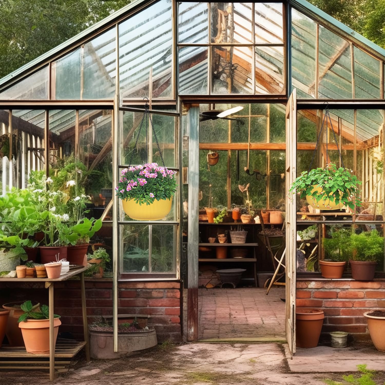 - Indoor/Outdoor Planter: The hanging plant pots with removable detachable hanging chain, either be hanging indoor like living room, dining room, bedroom, kitchen, hallway, windowsill, or outdoor like in patio, garden, deck, balcony. Flat bottom make it can sit without chains on desktop