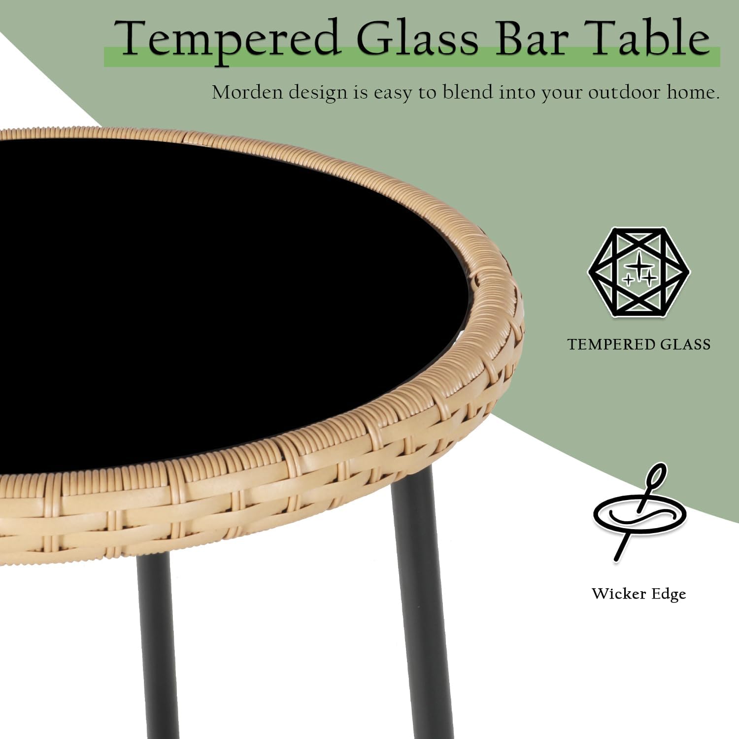 - Sturdy Metal Frame : The outdoor bar chair is made of high-strength steel frame, which enhances its load-bearing capacity and can withstand a weight of 300 pounds. Each patio bar stool is designed with an adjustment knob, so you don't have to worry about uneven ground. Our patio bar table is made of tempered glass, making it easier to clean and maintain. The maximum load-bearing capacity of the table is 100 pounds