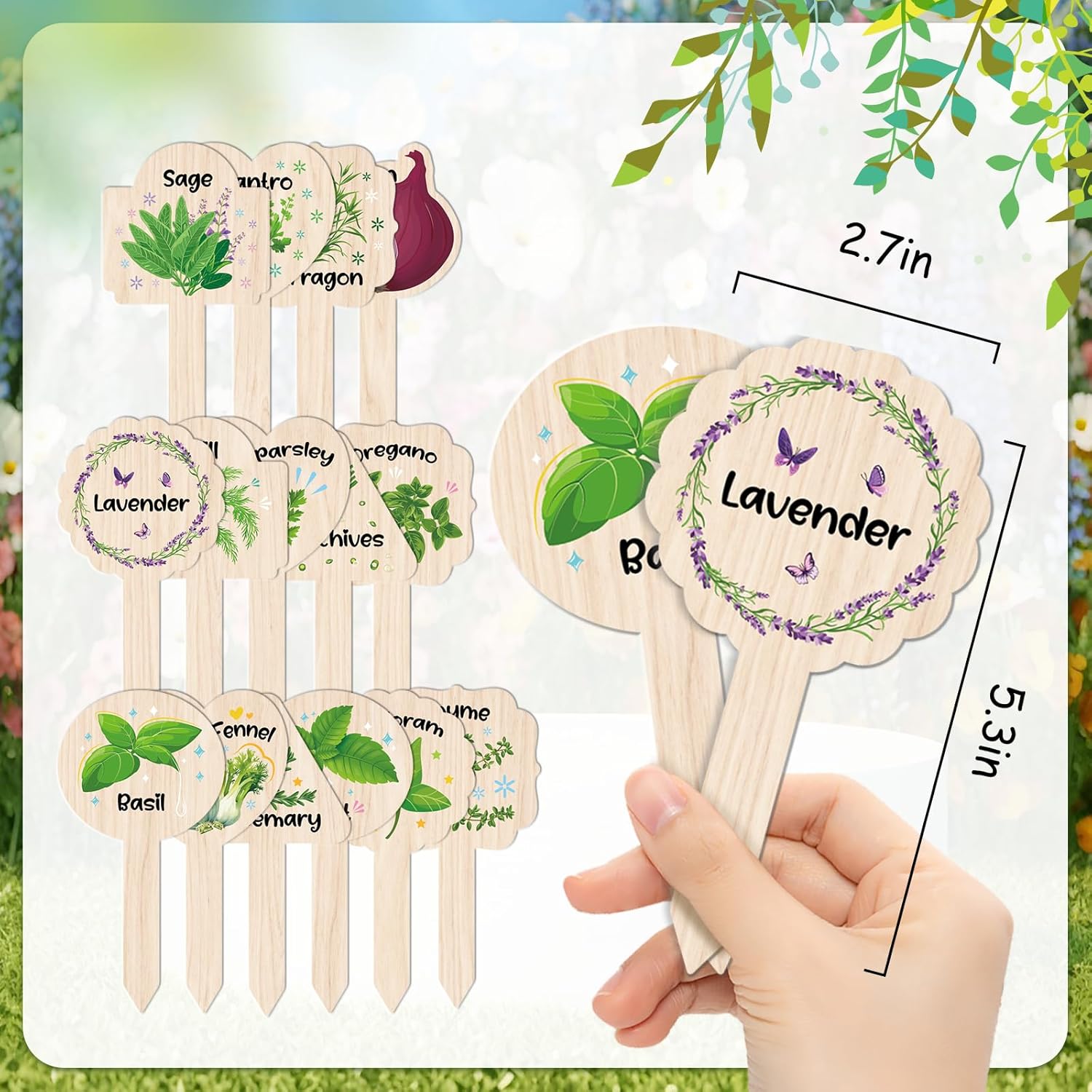 - ๐๐Widely Use - Herb Plant labels are suitable for indoor potted plants or outdoor gardens, the natural style is perfect for seeds, seedlings, fruit trees, flowers, plants, vegetables, potted plants, succulents, mini greenhouse accessories. The plant identification stakes will make your plants look vibrant and you will be happy when you see them growing.