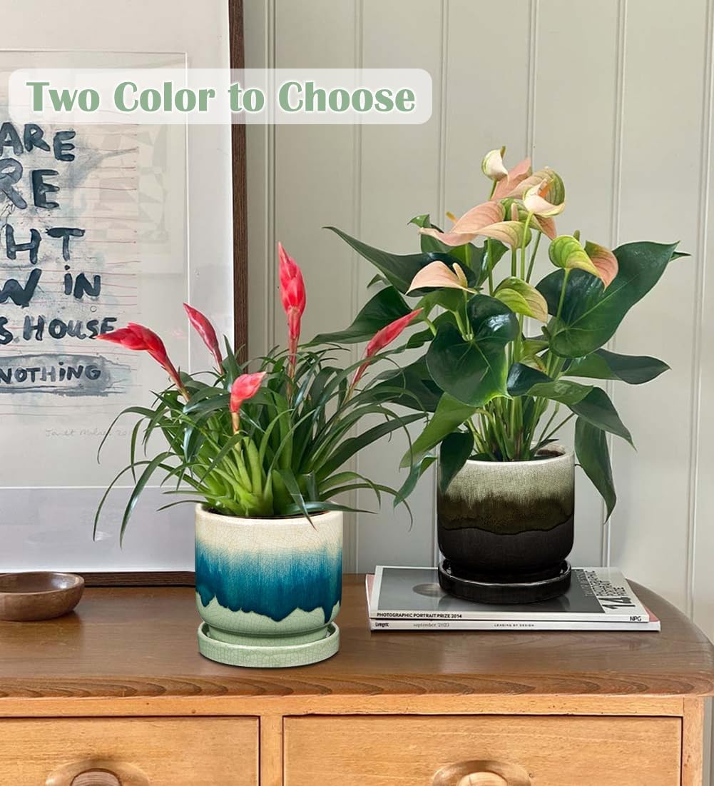 - Ceramic Plant Pot - Inspired by the colors of the dark sandy beach and the sea green hues of the waters, each plant pots indoor has gradient dark teal color on its surface, there has a natural color transition. Using superb glazing process and firing at high temperature, this small flower pots has ice cracked effect on the surface, exquisite and special, which making the house plant pots simply stunning. Its stylish appearance and minimalist design can fit for any home décor style
