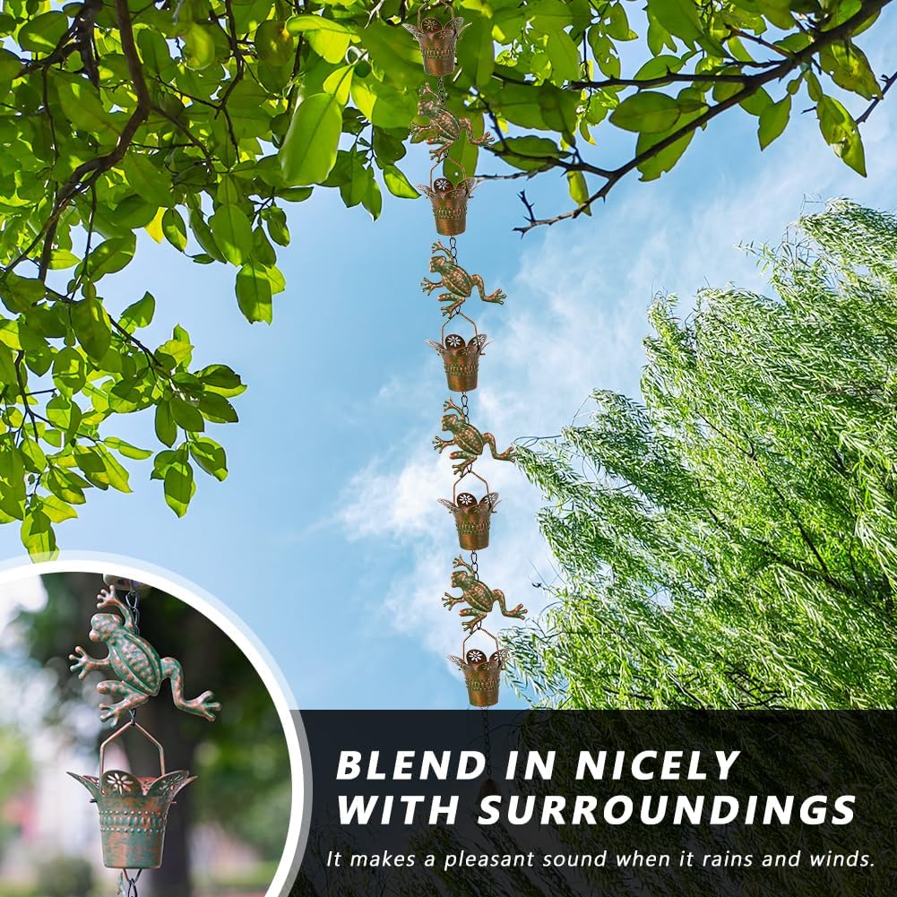 7.7FT Rain Chain for Outside, Rain Chain with 10 Frog Cups Adjustable Rain Chains for Gutters, Eaves, Drainage, Replacement for Downpout
