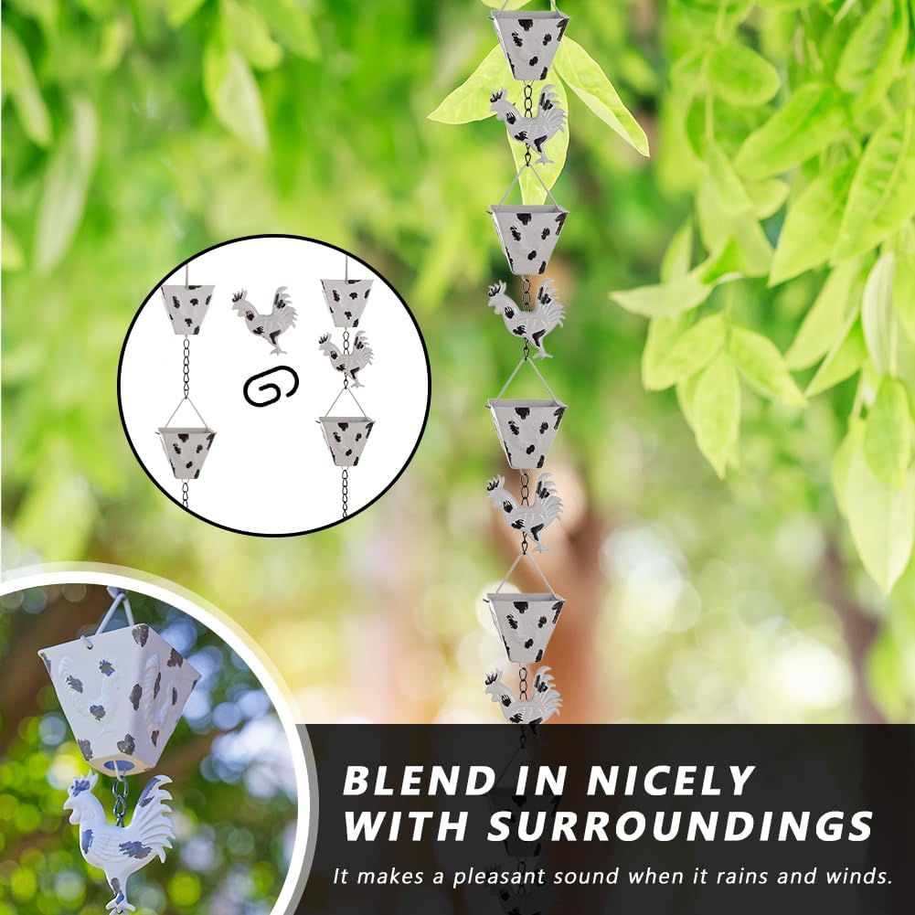 7.8FT Rain Chain for Outside, Rain Chain with 10 Rooster Cups Adjustable Rain Chains for Gutters, Eaves, Drainage, Replacement for Downpout