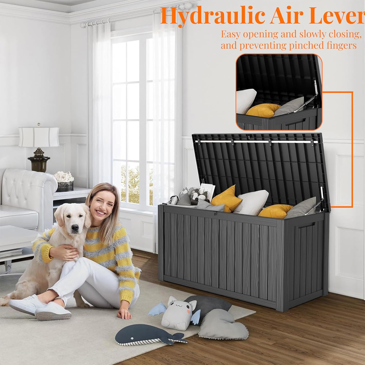 - VERSATILE IN EVERY SETTING: This patio storage box doubles as an indoor laundry organizer and an outdoor yard storage unit for cushions, garden tools, pool accessories, outdoor gear, and more, offering ample space. It can also serve as a side table, patio seat, storage bench, or footstool