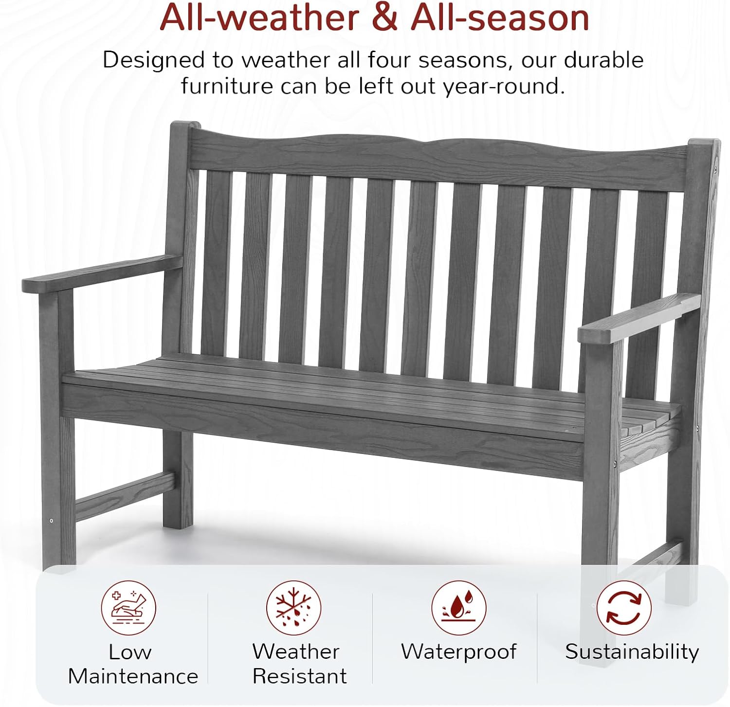 - 【800 lbs Weight Capacity】The garden bench has passed the 800 lbs load testing.