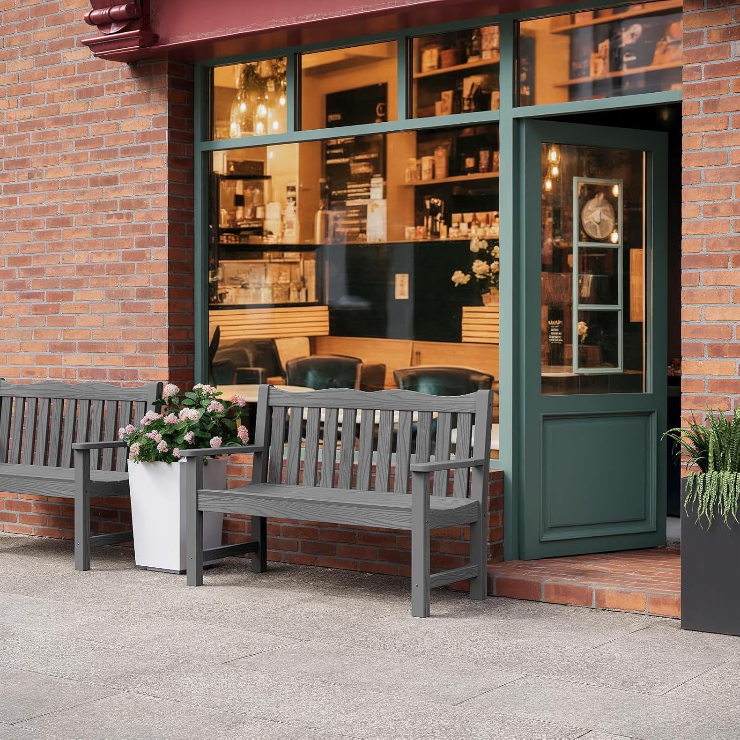 Outdoor Bench, Waterproof Garden Benches Set of 2, Never Rot or Fade, for Garden, Porch, Backyard and Deck, Grey