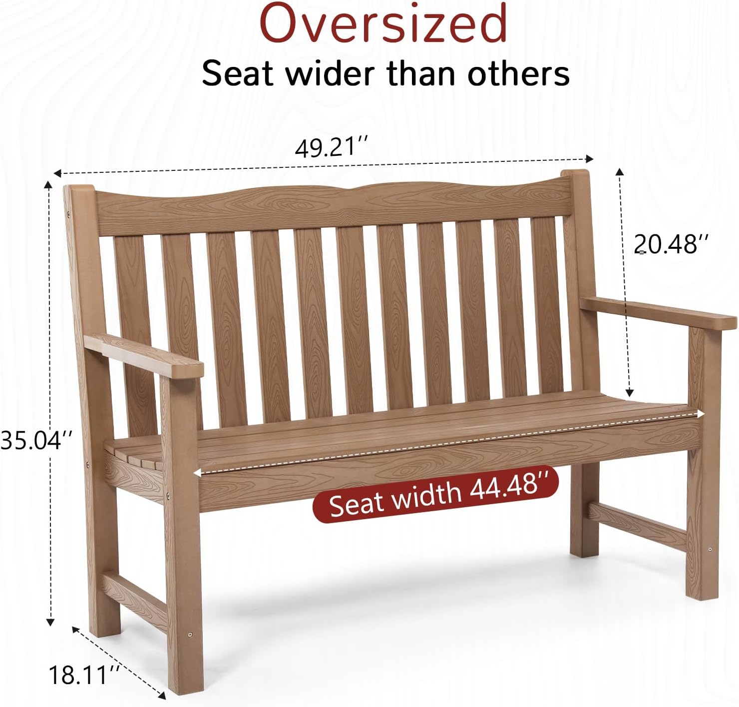Outdoor Benches Set of 2, 2-Person Poly Lumber Garden Bench, Never Rot or Fade, Looks Like Real Wood, Teak