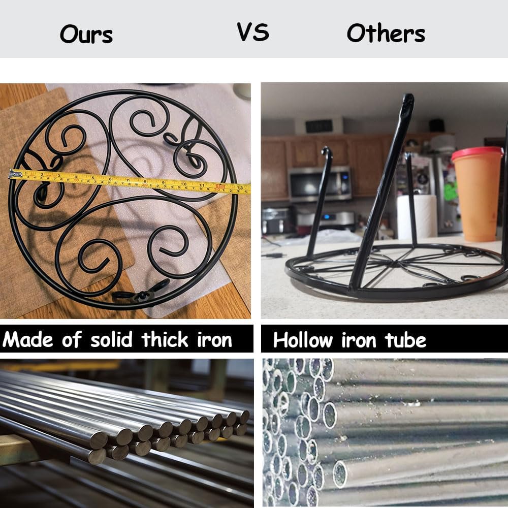 2 Pack 13'' Diameter Metal Plant Stand for Large Plant/Flower Pot Heavy Duty Potted Holder Indoor Outdoor Rustproof Iron Display Stand,Black