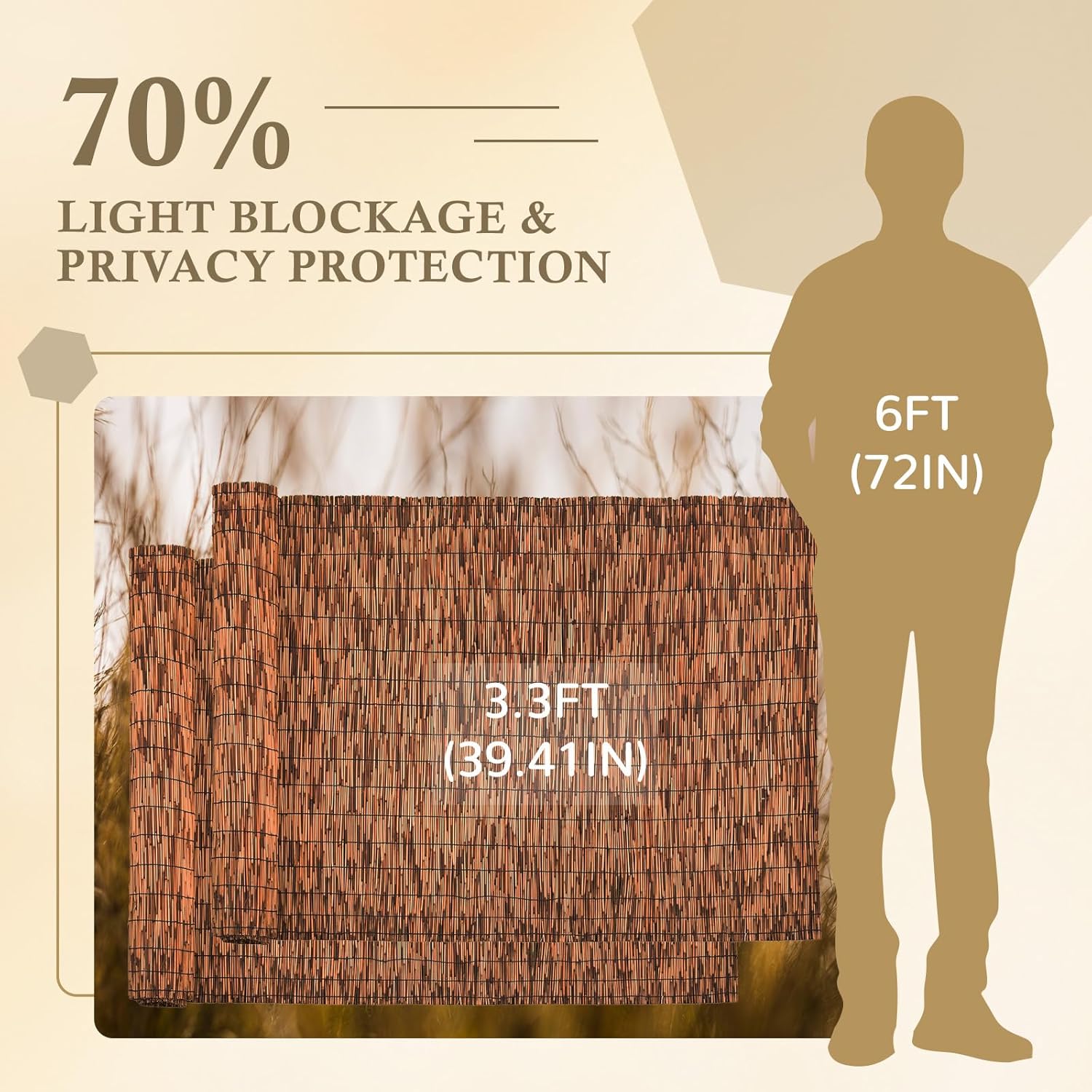 - Material and Craftsmanship: Each reed screen is meticulously hand-selected, and the garden reed fencing is woven together with cotton strings. The bamboo reed fencing can block 70% of the sun's heat, providing more shade and keeping the area cool throughout the summer