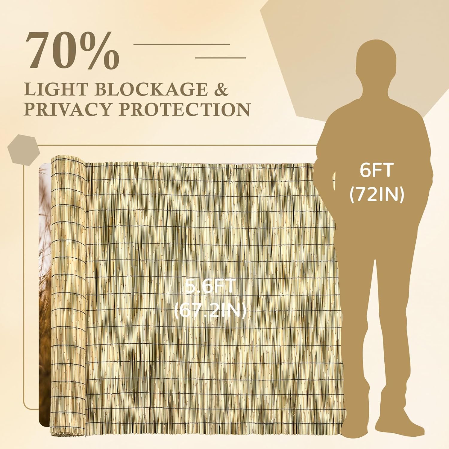 Natural 5.6FT X 16.4FT Reed Fencing Roll, Balcony Privacy Reed Shade Bamboo Fencing Garden Fence Border, Wind Block Sunshade Fence Screen for Outdoor Yard Patio Flower Bed Edge