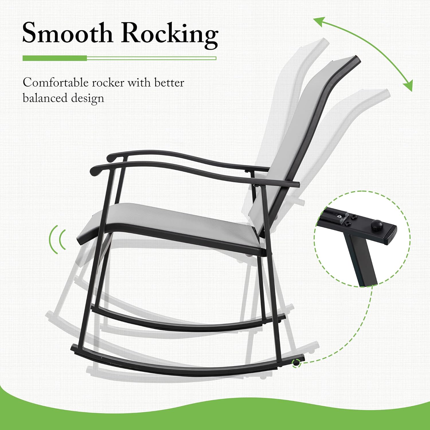 - Smooth Rocking: The strong metal frame provides supper support and balance for the rocker. You will enjoy your outdoor leisure time on the rocker without any worry of falling down.
