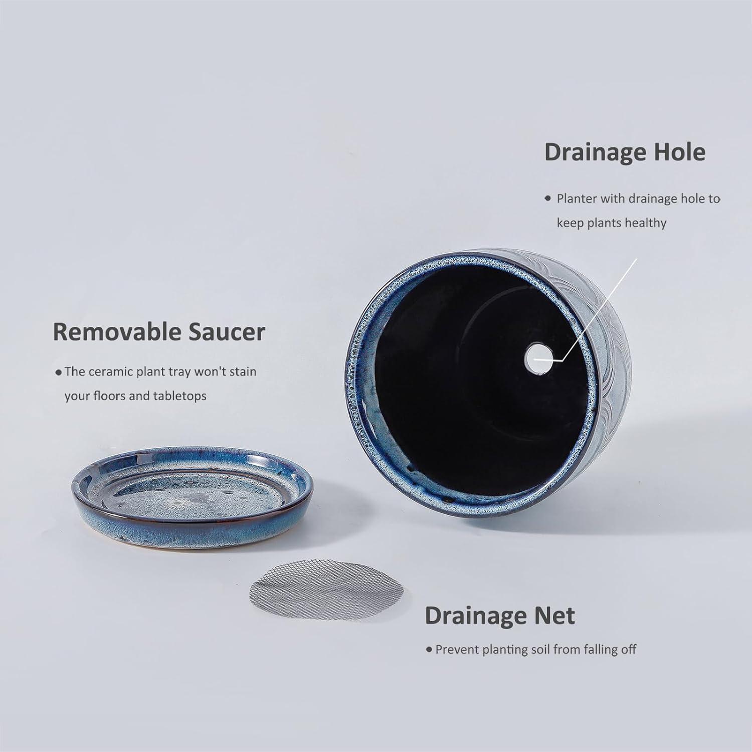 - ๐ฃ๐น๐ฎ๐ป๐๐ฒ๐ฟ ๐๐ถ๐๐ต ๐ฑ๐ฟ๐ฎ๐ถ๐ป๐ฎ๐ด ๐ต๐ผ๐น๐ฒ & ๐ฆ๐ฎ๐๐ฐ๐ฒ๐ฟโThe plant pots with drainage Hole ensure your plants stay healthy. No more worrying about overwatering or root rot. Provide pot-fitting trays to store excess water and provide plants with constant moisture. The ceramic plant tray won't stain your floors and tabletops. It is an ideal planter for indoor plants.