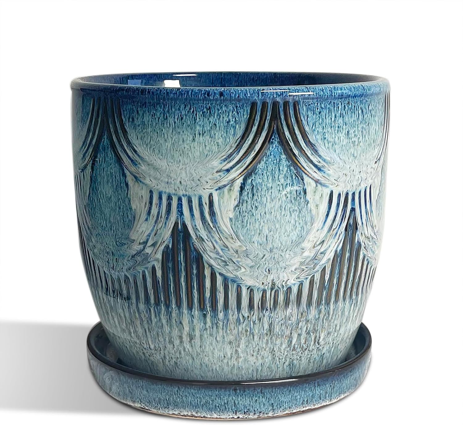 Plant Pots Indoor, Ceramic Planter, 6in Plant Pot, Plant Pots with Drainage Holes and Saucers, Flower Pots for Indoor Plants, Reactive Glaze Blue