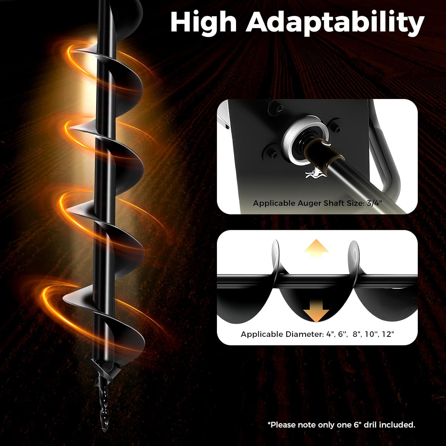 - HIGH ADAPTABILITY: This excavator can be equipped with augers up to 300 mm/11.81 inches in diameter, so you can install different auger sizes to suit your work. The 11.81-inch extension bar included in the package can be used with the auger to allow you to dig deeper, and it's long enough to allow you to save energy without bending over.