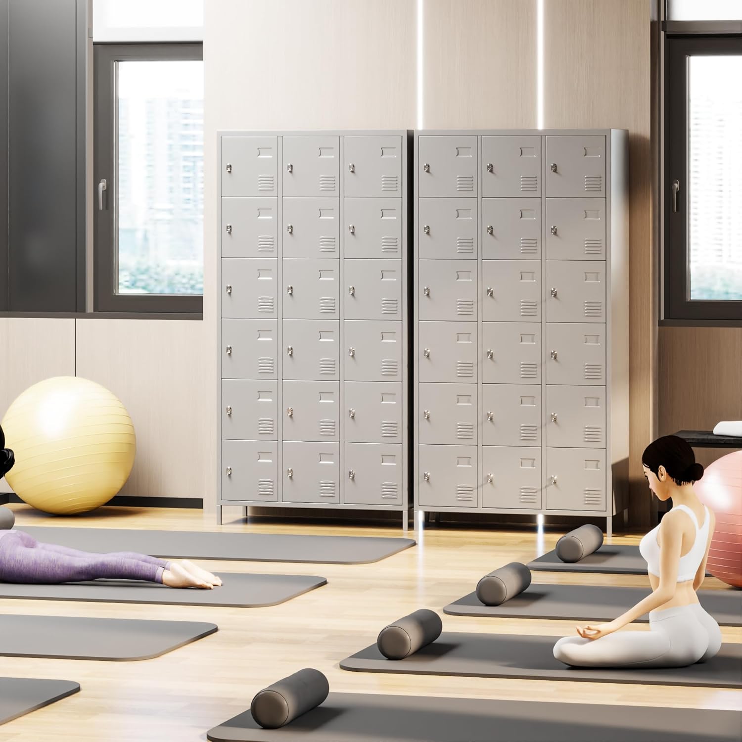 METAN Metal Locker for School Office Gym Bedroom, 18 Doors Steel Storage Locker Cabinet for Employees, Industrial Storage Locker, Assembly Required (18 Door-Grey)