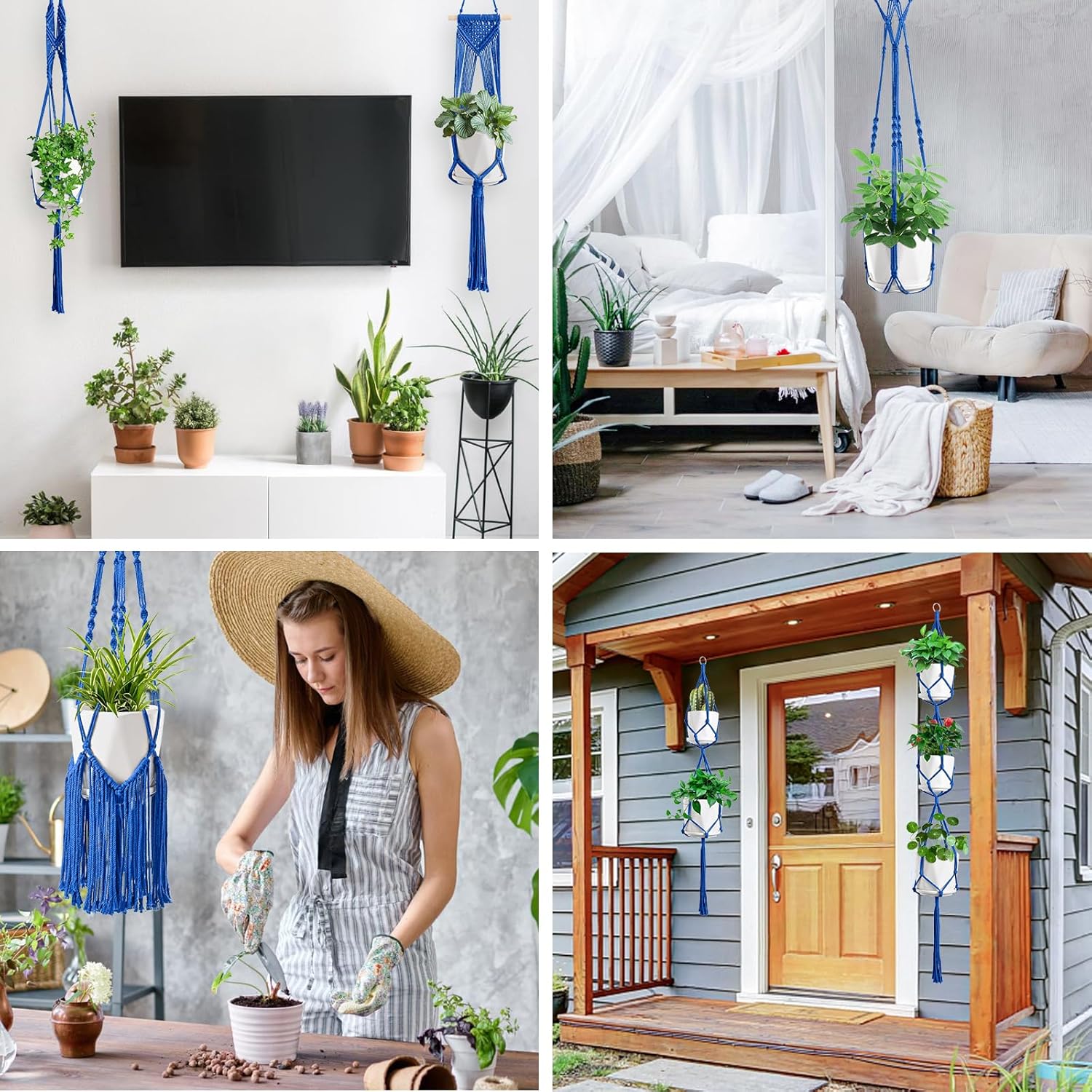 - HEAVY DUTY KNOTS: Hanging plant holders are handcrafted from high quality, strong, soft and sturdy cotton rope. Perfect for hanging all kinds of plant pots, including ceramic pots, metal pots, plastic pots, glass pots, etc., Ideal pot size is 6-10"