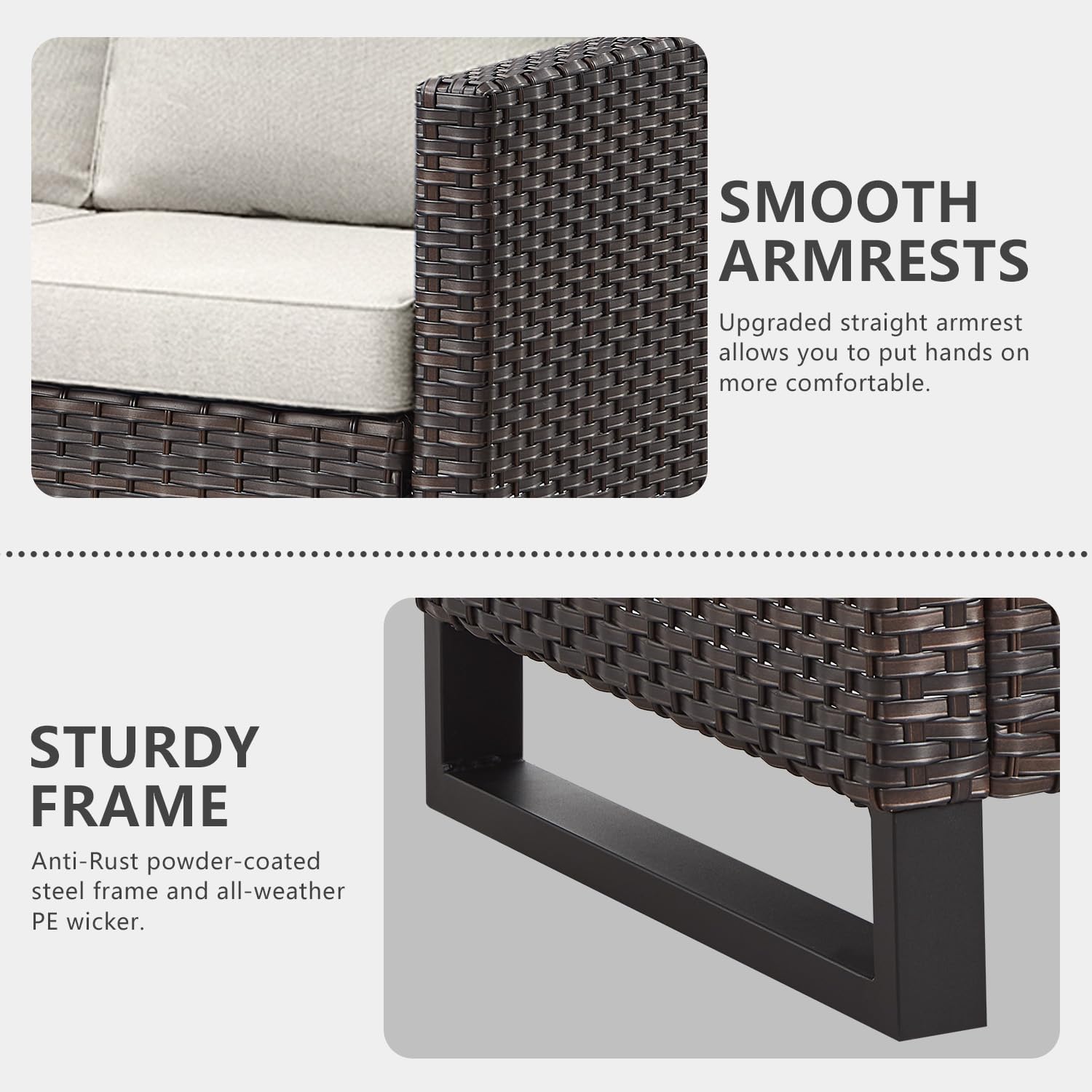 - 【Exquisite and Ergonomic Design】The patio conversation sets is totally upgraded with straight armrest and the heightened ergonomically curved backrest. Allow your back to lean back slightly,The height of patio couch is increased to 30.3 inch,more suitable for American family, Providing more comfortable seating experience,The overall design is more elegant and comfortable.