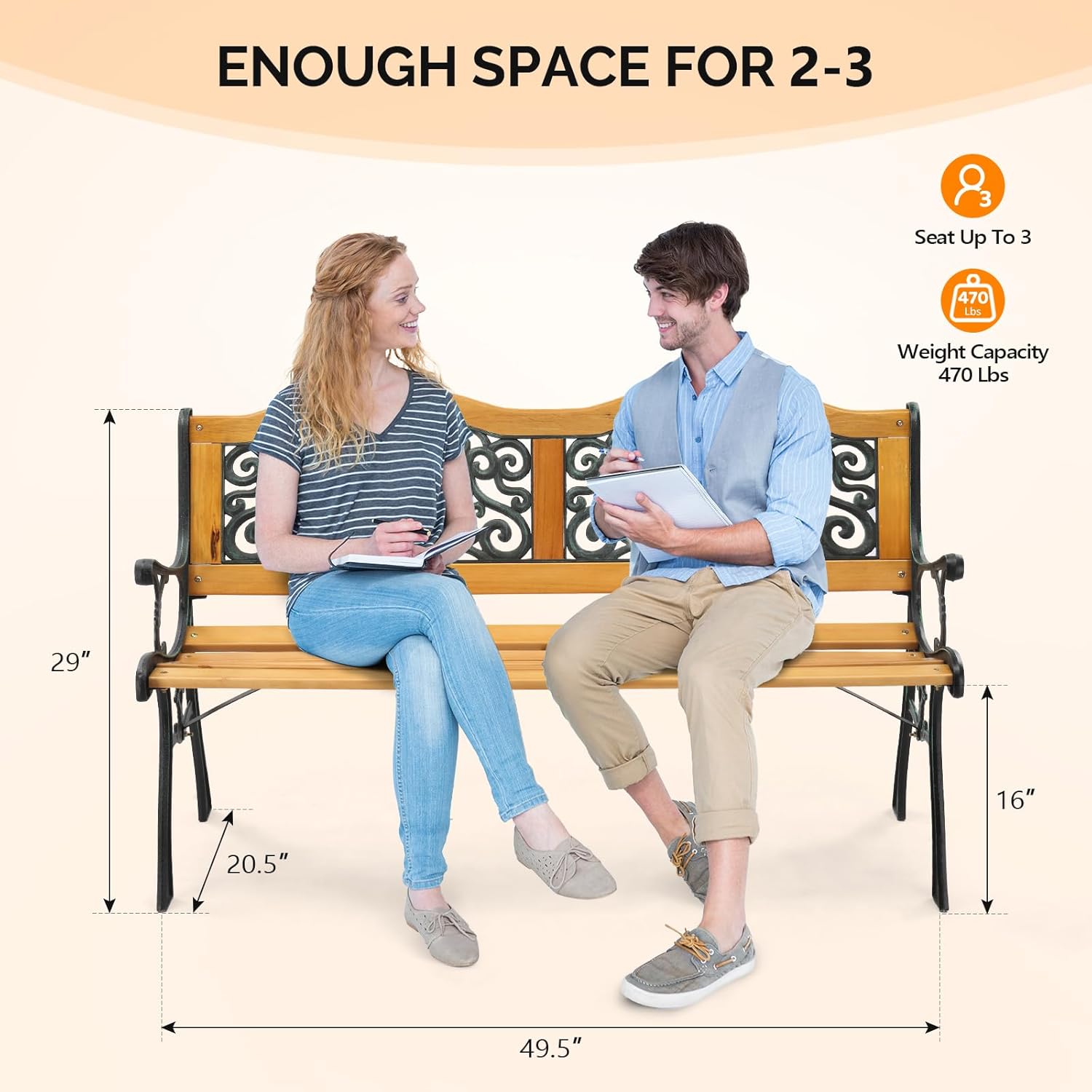 - Large Bearing Capacities: The small front porch bench boasts robust support, accommodating 2-3 people comfortably with a weight capacity of 470 lbs