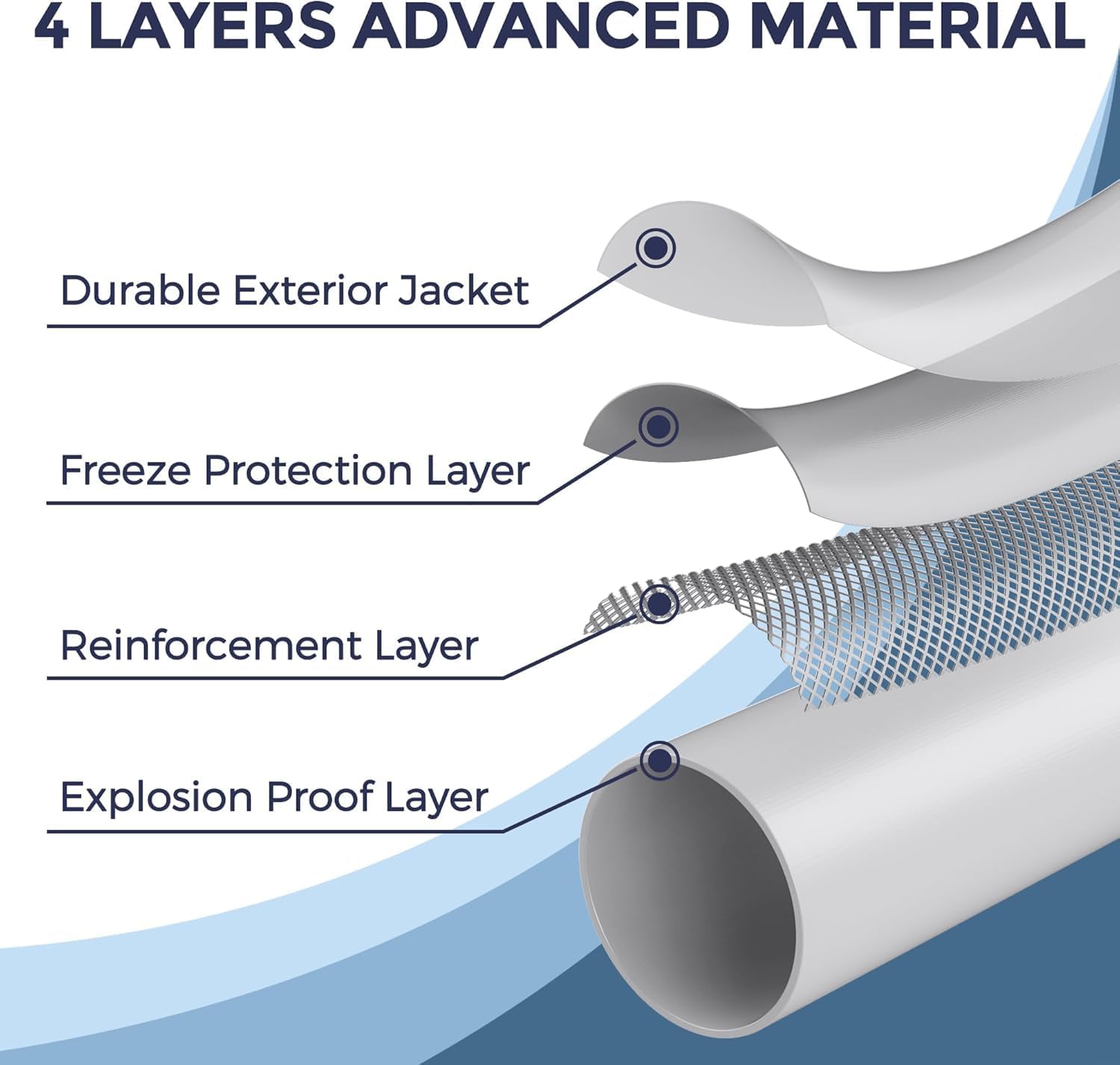 • Provides Freeze Protection: The heated water hose has adapted the self-regulating heating cable to prevent water from freezing in water pipes. freeze protection down to -20˚ F