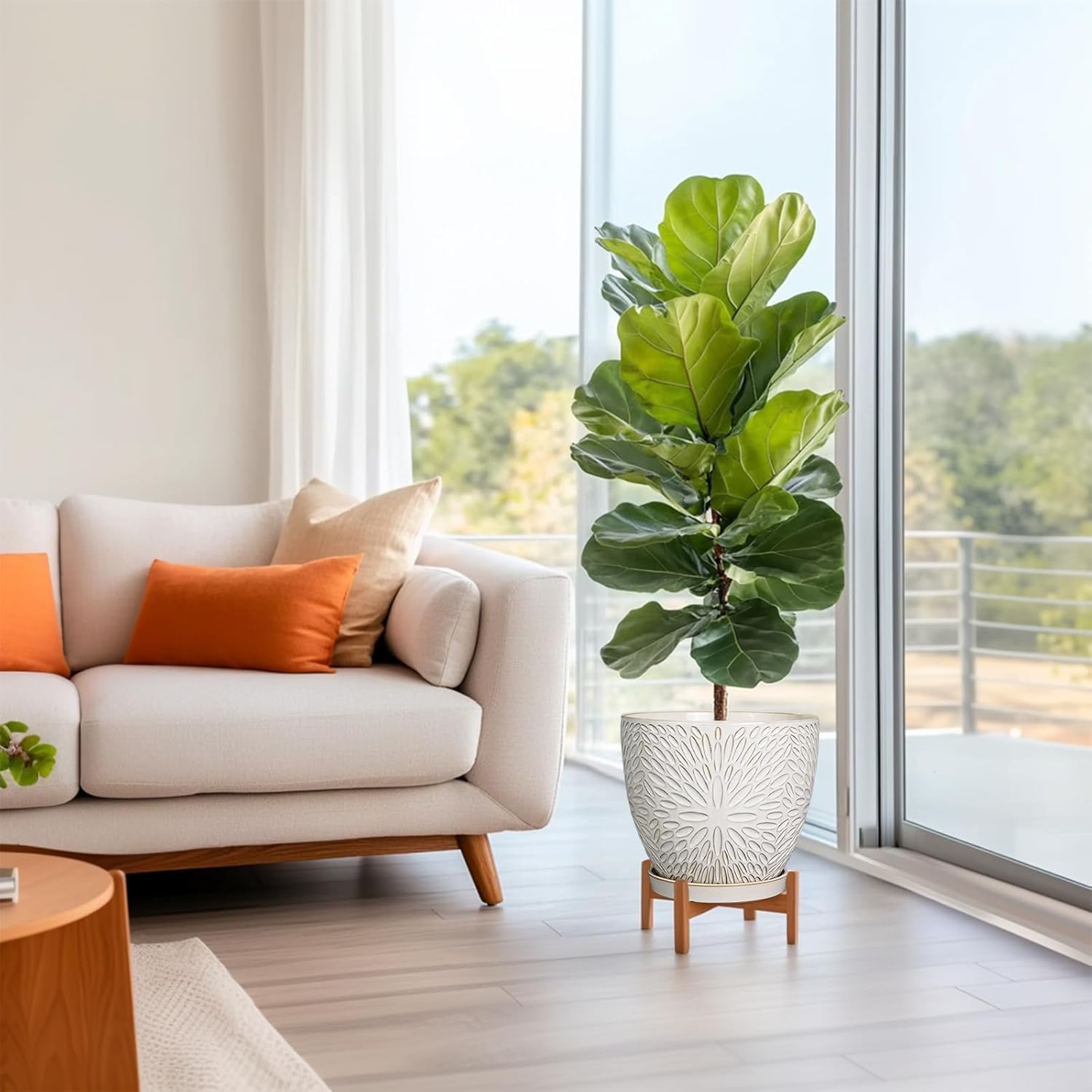 - Mid-Century Modern Style: This Ceramic Planter is made of durable ceramic, it is not only sturdy, but also easy to maintain and clean. The surface is a relief in the shape of a blooming daisy, adding artistic flair to your space and showcasing unique taste and style
