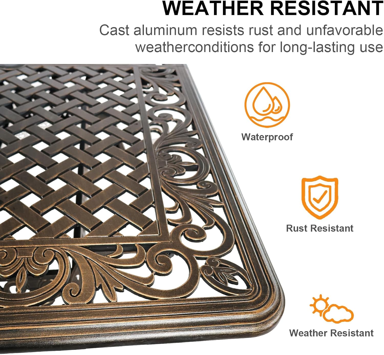- 【High-quality Material】: Bistro table is made of high quality sturdy cast aluminium material, lightweight and easy to move around. Durable and sturdy legs and table tops and cast aluminium frames make it rust and weather resistant for long term outdoor leisure use.