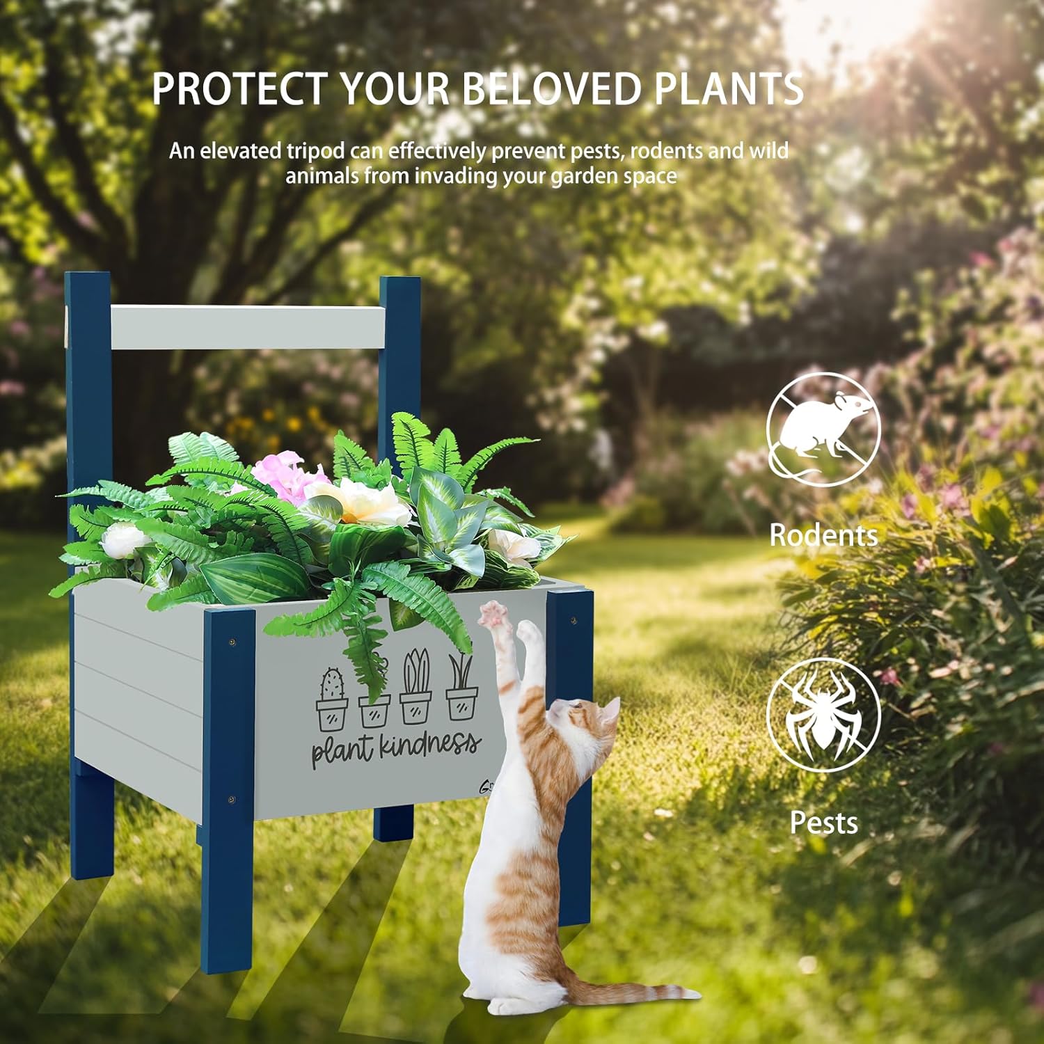 Raised Garden Bed with Trellis Elevated Planter Box with Legs, Drainage Holes for Outdoor Garden, Patio, Natural Wood 17.7”L x 16.1”W x27.6”H (Blue)
