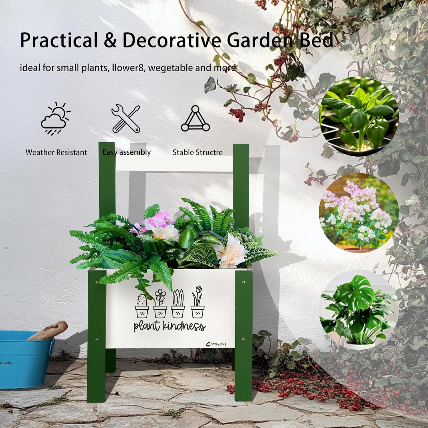 - Grow Your Dream Garden Anywhere:Transform any space into a thriving garden oasis with our versatile raised garden bed! Perfect for growing juicy tomatoes, fresh herbs, vibrant flowers, and crisp vegetables right in your backyard, patio, balcony, or greenhouse.Whether you're a beginner gardener starting your first crop or an experienced grower expanding your harvest, this raised bed brings the joy of gardening to everyone. Watch as your homegrown vegetables, fragrant herbs, and colorful blooms turn your outdoor area into a vibrant, living paradise!