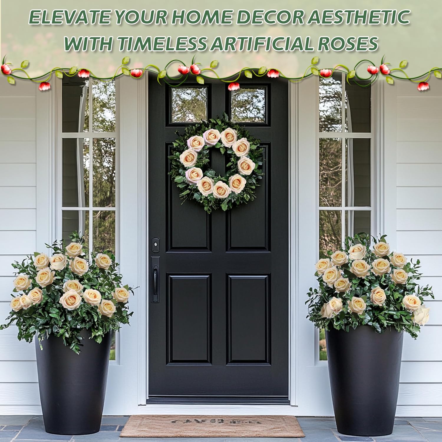 - Realistic Beauty: Crafted from silk petals and leaves, these roses artificial flowers capture the essence of natural blooms, adding a touch of elegance to any space without the worry of wilting or watering. The sturdy long stems are made of flexible metal wire wrapped in plastic, ensuring durability and easy arrangement, allowing you to bend and adjust them to achieve your desired look without breaking. For a more realistic touch, the stems feature artificial thorns--handle with care