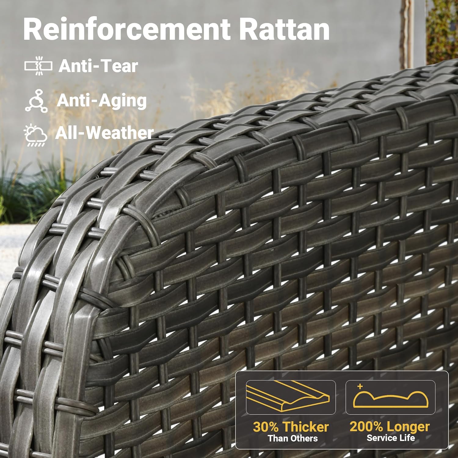 - High Quality Wicker: Made of powder-coated metal frame and covered in weather-proof and PE rattan, handwoven wicker make the whole set much more sturdy
