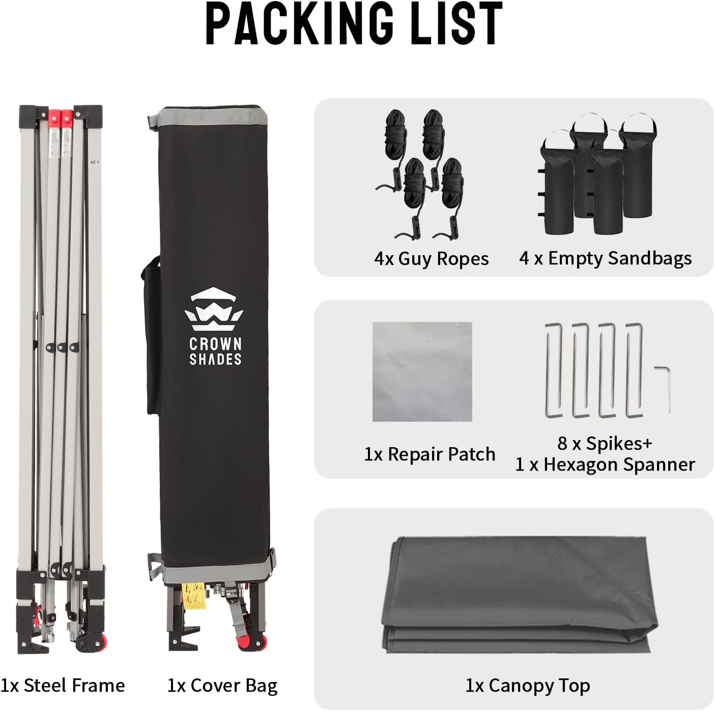 - STO’ N GO SYSTEM - Our lift-free system makes collapsing, storing, and transporting the 8x8 tent a breeze. The 8x8 tents can be stored with the fabric attached, with a specialized pocket for 4 sandbags, 8 stakes, and 4 guy ropes. Integrated wheels in the feet allow easy movement even when the instant shelter tent is set up, by simply lifting the side without wheels. This feature is especially useful for quick setup and takedown at locations like the patio or sports events