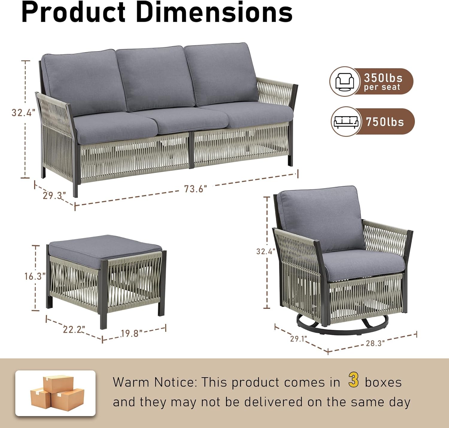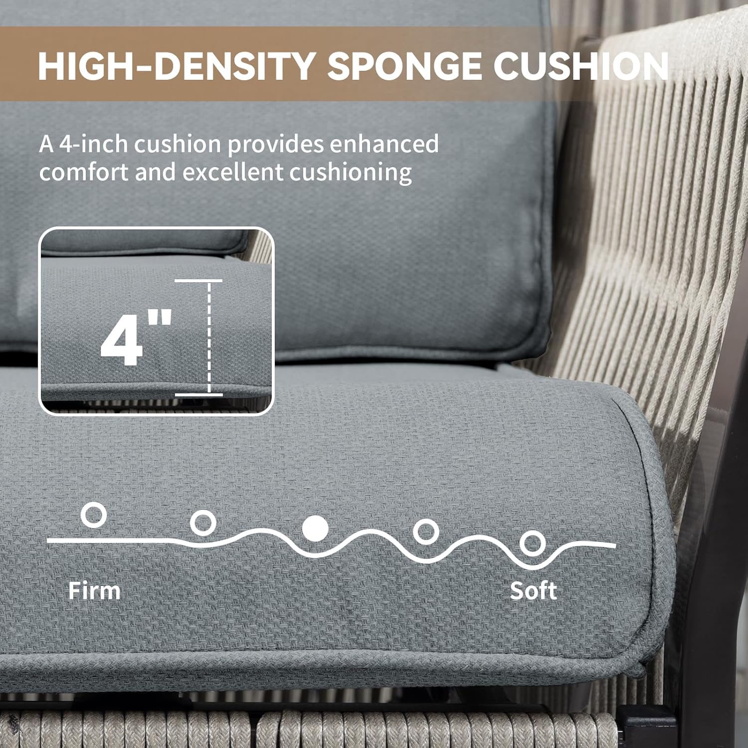Patio Furniture Wicker Outdoor Conversation Set, 5-Piece All Weather Patio Furniture Rattan Rocking Sets w/Removable Cushions & Ottomans for Backyard, Balcony, Deck, Dark Grey