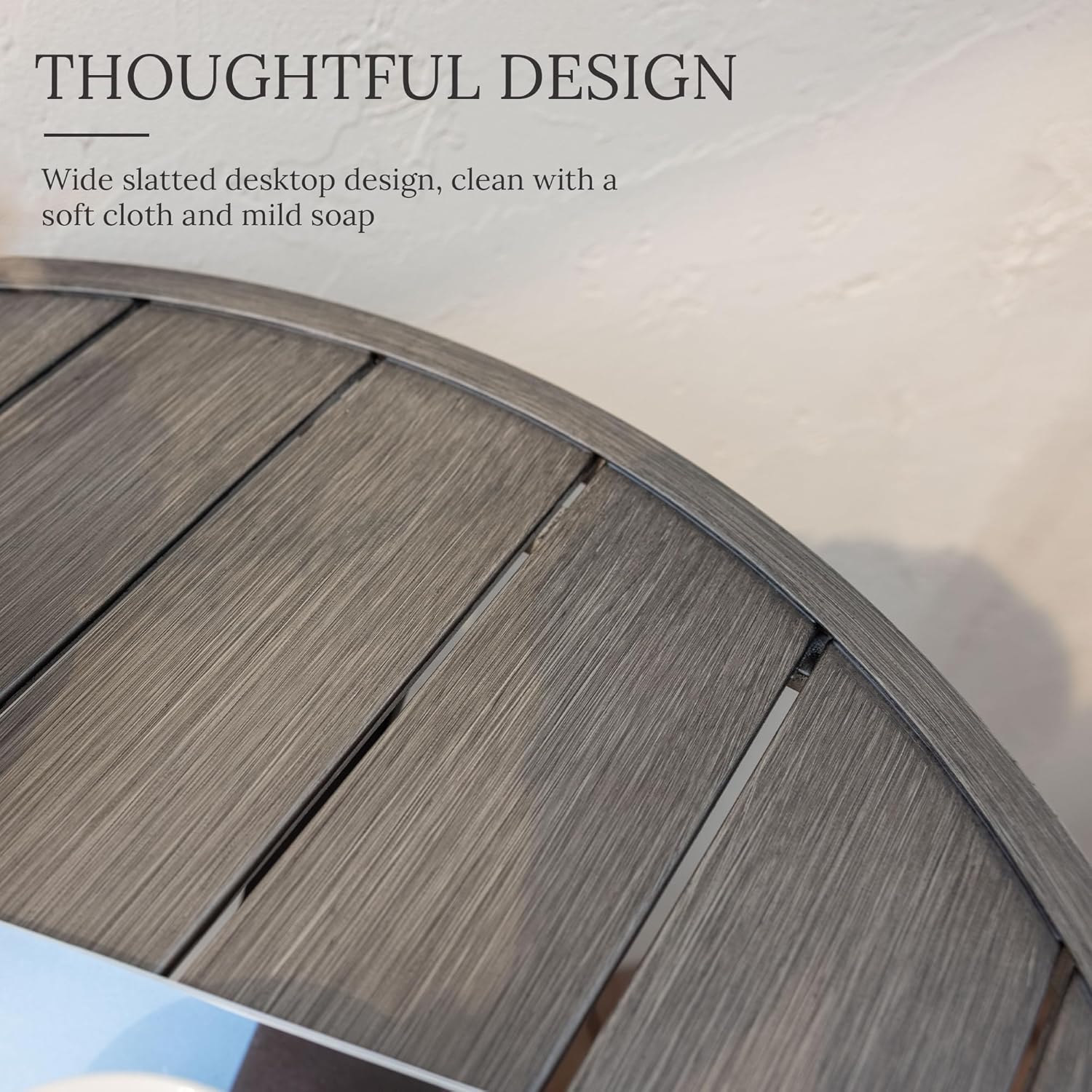 - Classic Tabletop: The wood-patterned tabletop expresses the elegant design, Vicllax outdoor coffee table will not crack like ordinary wood, nor will it burn like a metal table top after long exposure to the sun
