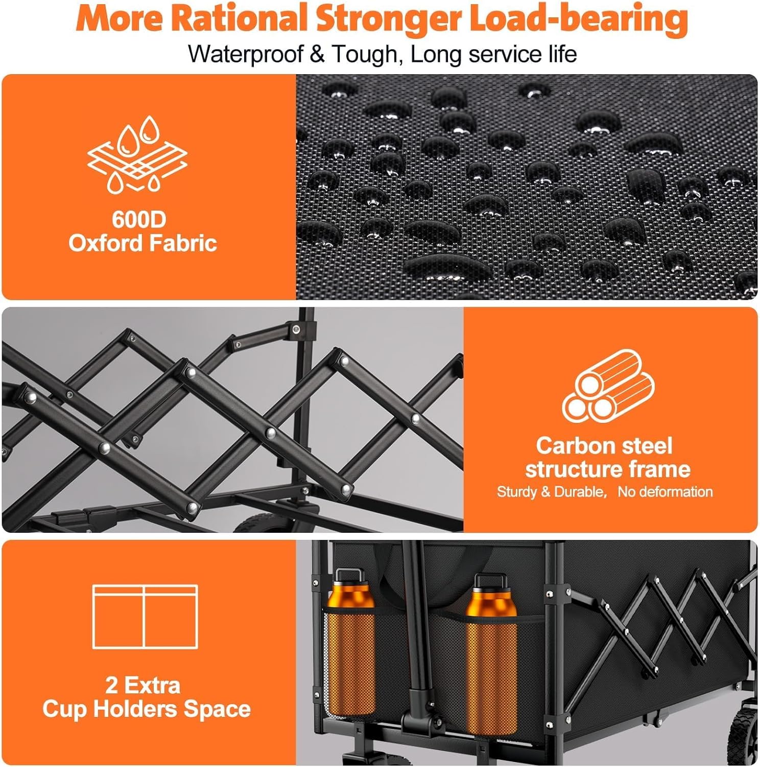 - Wide Use-Utility Wagon: Designed with four all-terrain wheels, including two 360° rotating front wheels, our wagon cart effortlessly moves over various terrains. Whether you need it for shopping, gardening, picnicking, camping, or handling sports equipment, our utility wagon is the perfect companion