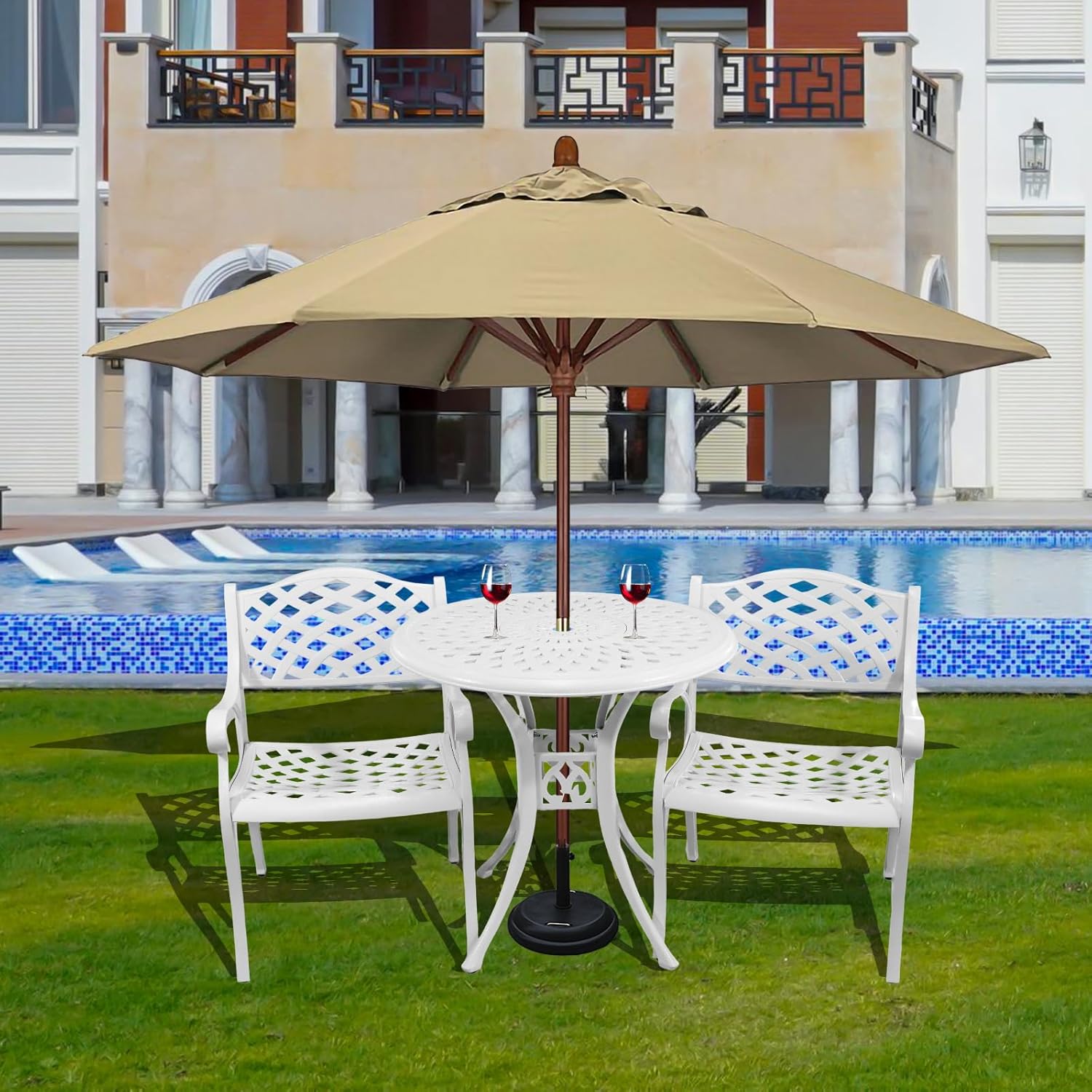 - 【Widely Applicable and Easy to Assemble】: Cast Aluminum bistro set 3 piece can be used not only for front porch, garden, balcony, courtyard, and swimming pool, but also for cafes, birthday parties, and romantic wedding venues; Although there are many accessories in the small tavern set, it is relatively easy to assemble through videos and simple instructions. If you have any questions, please feel free to contact us and we will answer them within 24 hours.