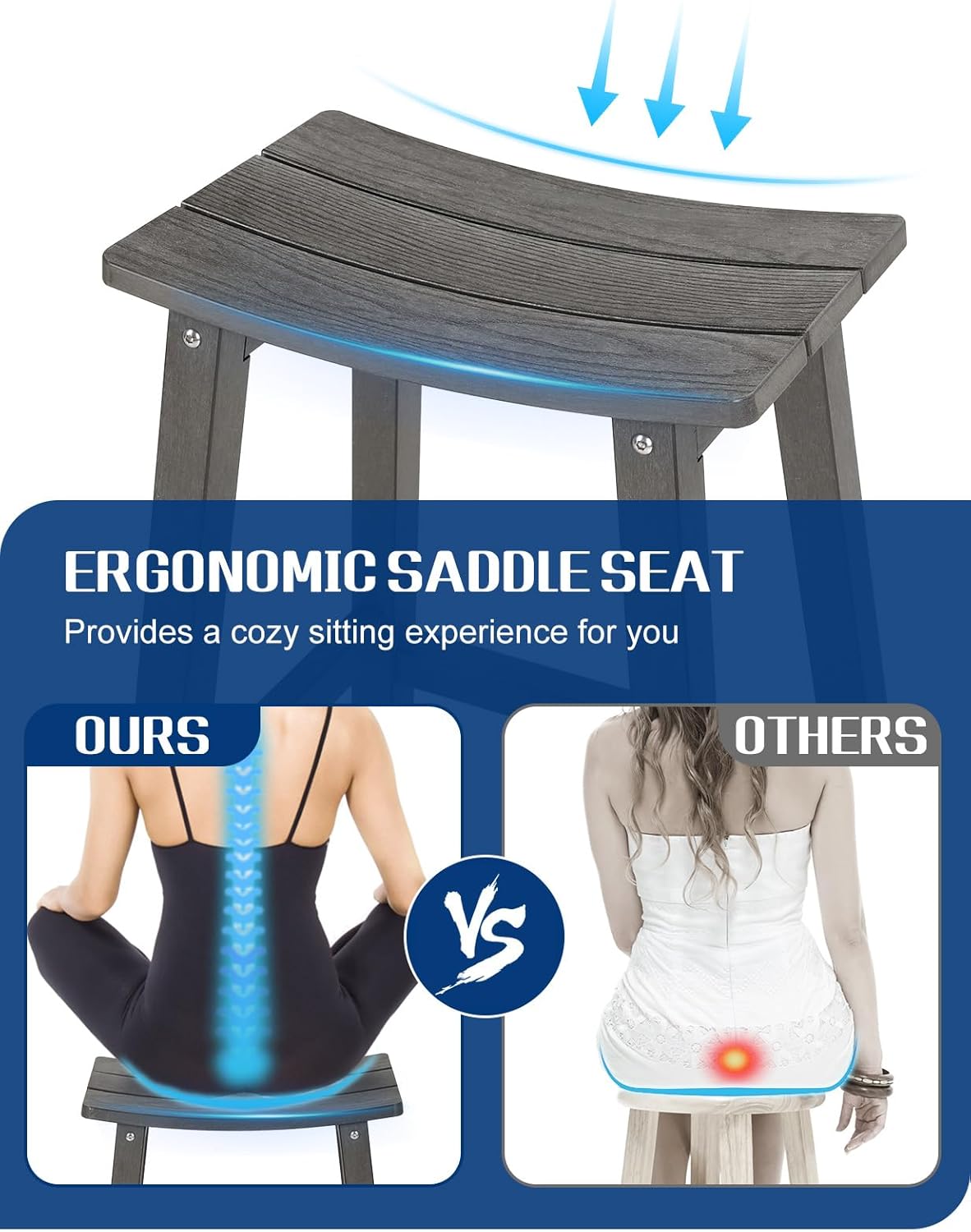 Weatherproof Bar Stools Set of 2, 28" Height Outdoor Bar Stools Holds up to 400 lbs, Saddle Seat, Bar Height Stools for Patio, Garden, and Kitchen Island, Gray