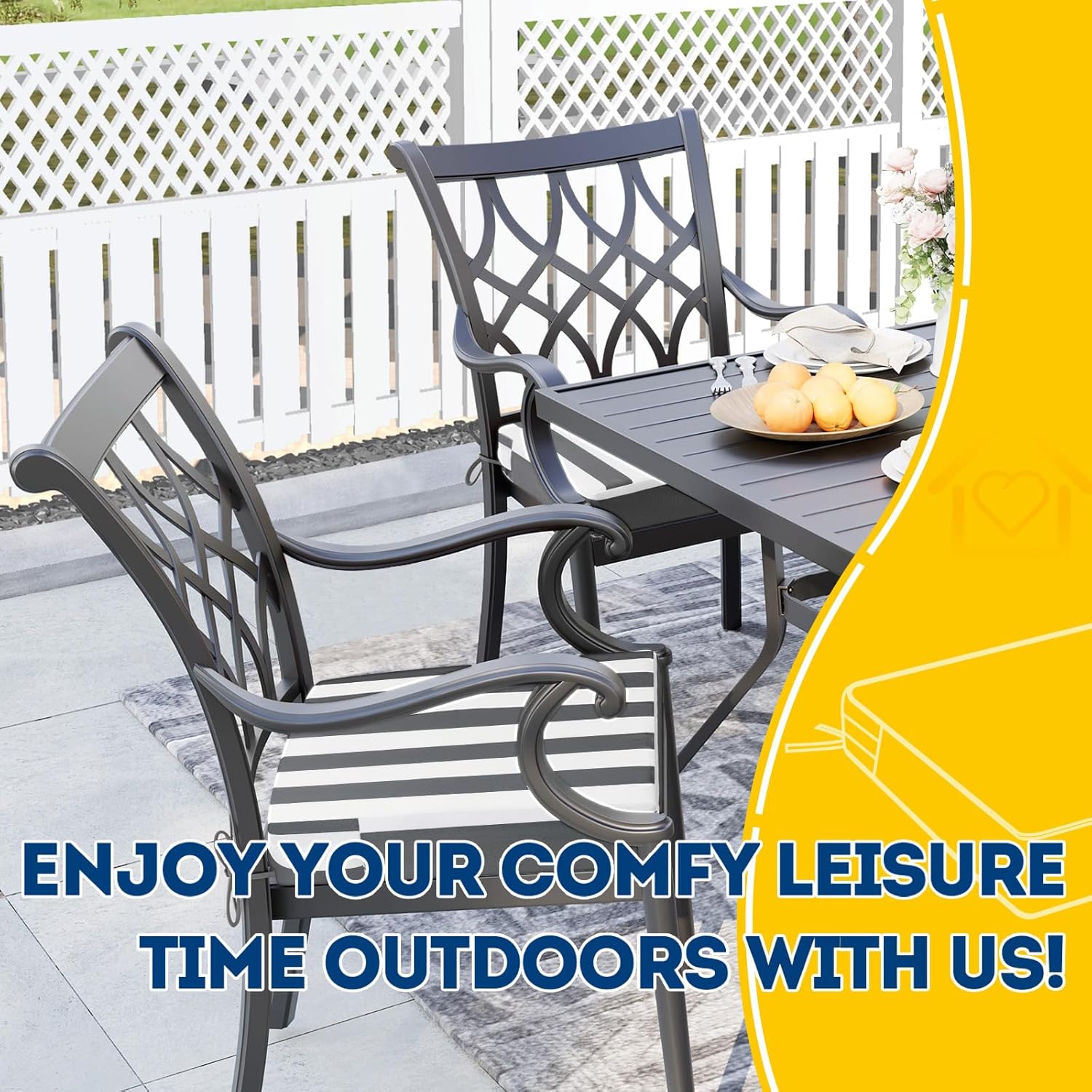 - Wide Use & Tips: These outdoor dining chair cushions fit pools, patios, balconies, decks, backyards, and gazebos. Foam inserts and covers are packed separately in bags and placed in one box—check all parts. Easy assembly required