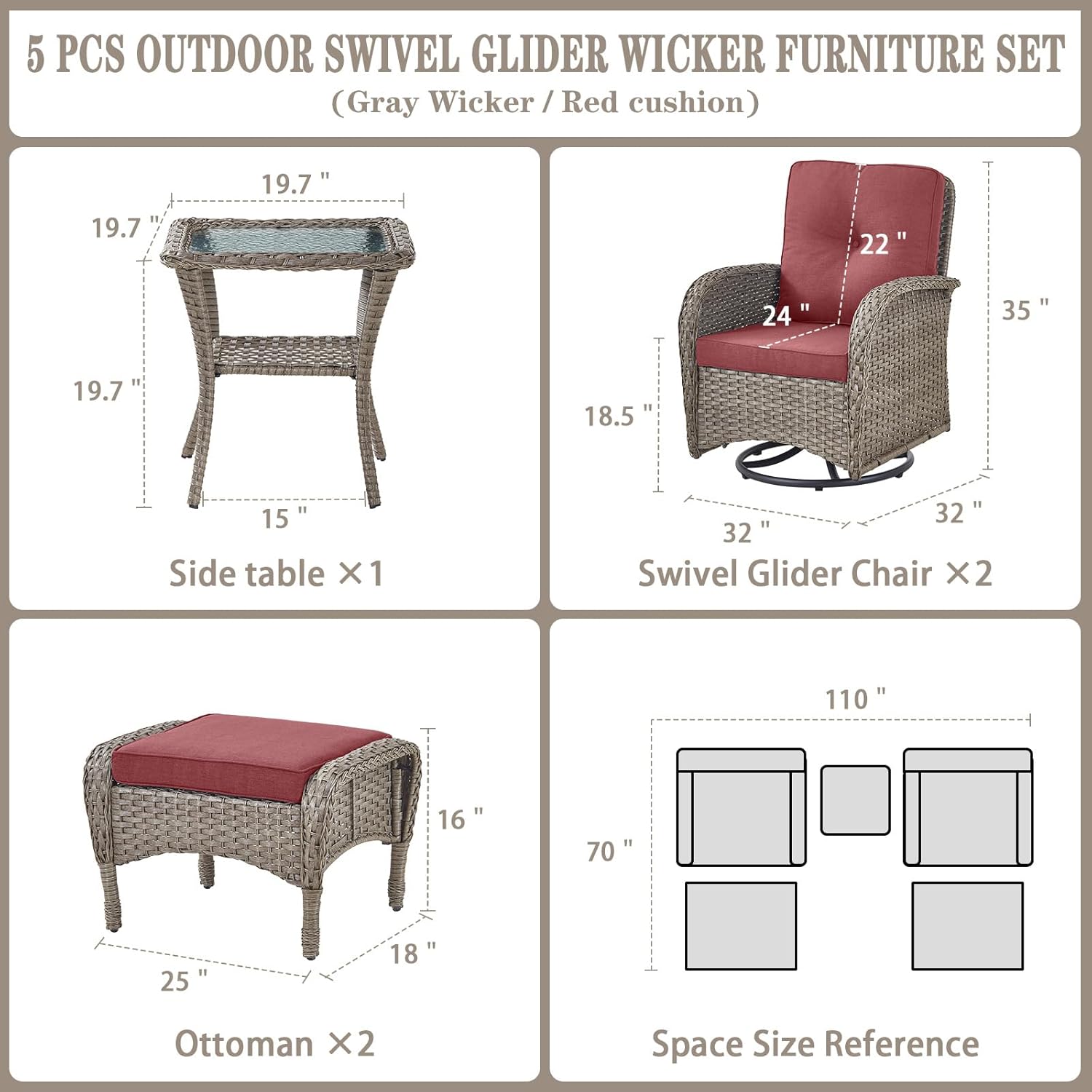 - Size : 5 PCS - Swivel Glider & Ottoman