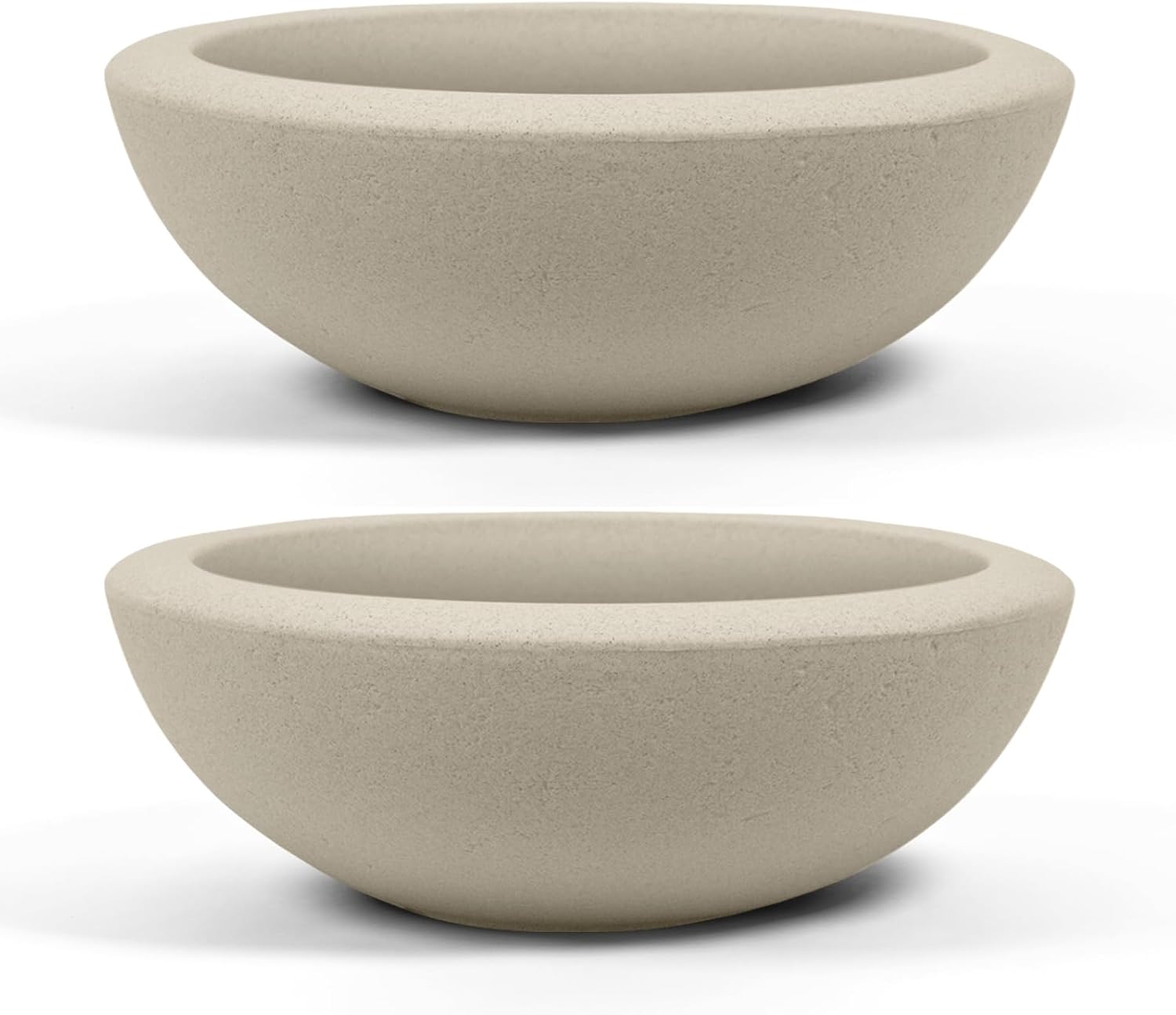 ARBORA 26" Santorini Bowl 2-Pack with Classic Cream Finish - Polyresin Indoor and Outdoor Planter2, Durable, Weatherproof, Lightweight, Large Plant Pots for Patio, Garden, Deck, Entryway