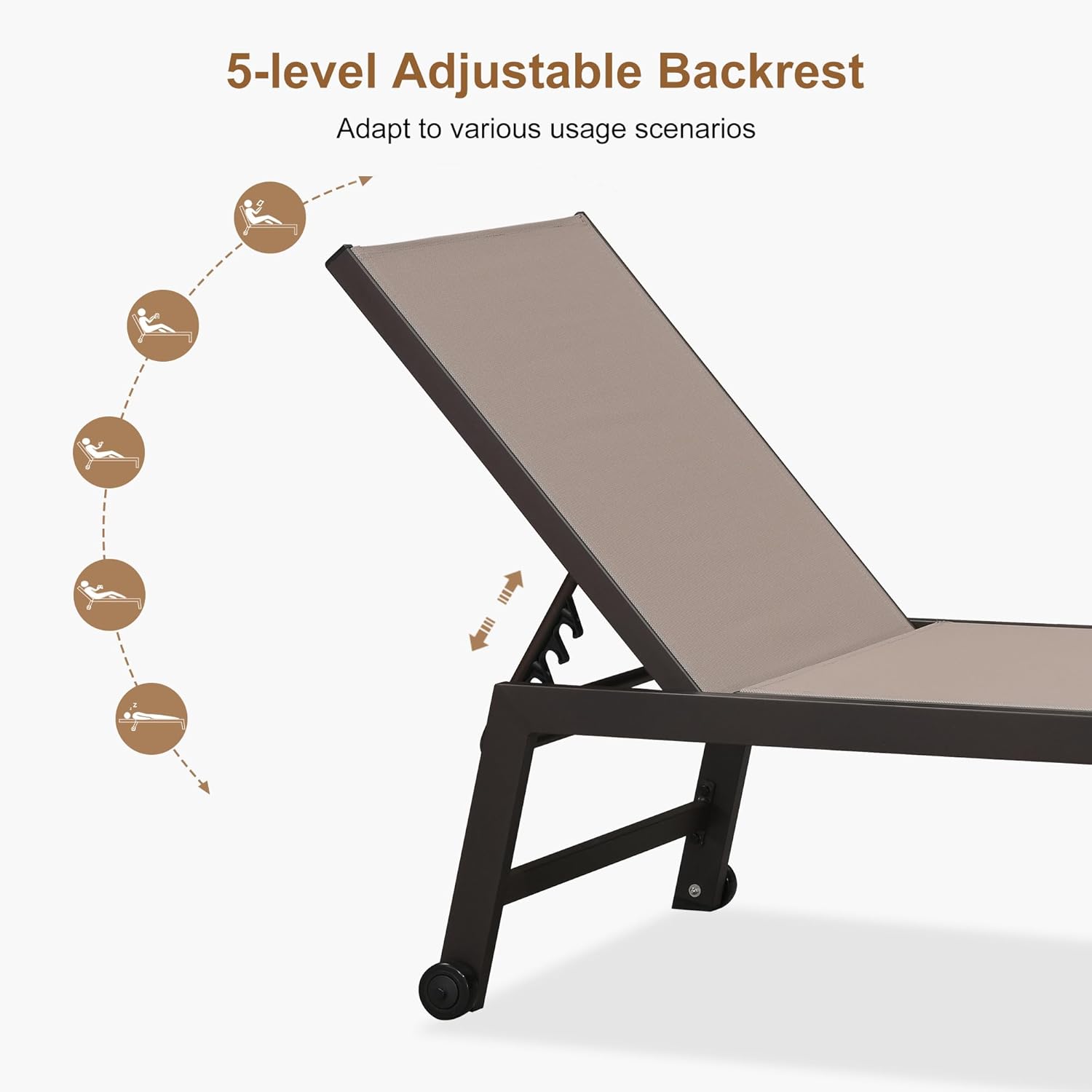 - COMFORTABLE FABRIC: This patio lounge chair features a sunbathing textilene design, providing a comfortable and relaxing lounging experience. Quick-dry and fade-resistant, perfect for poolside or patio use.