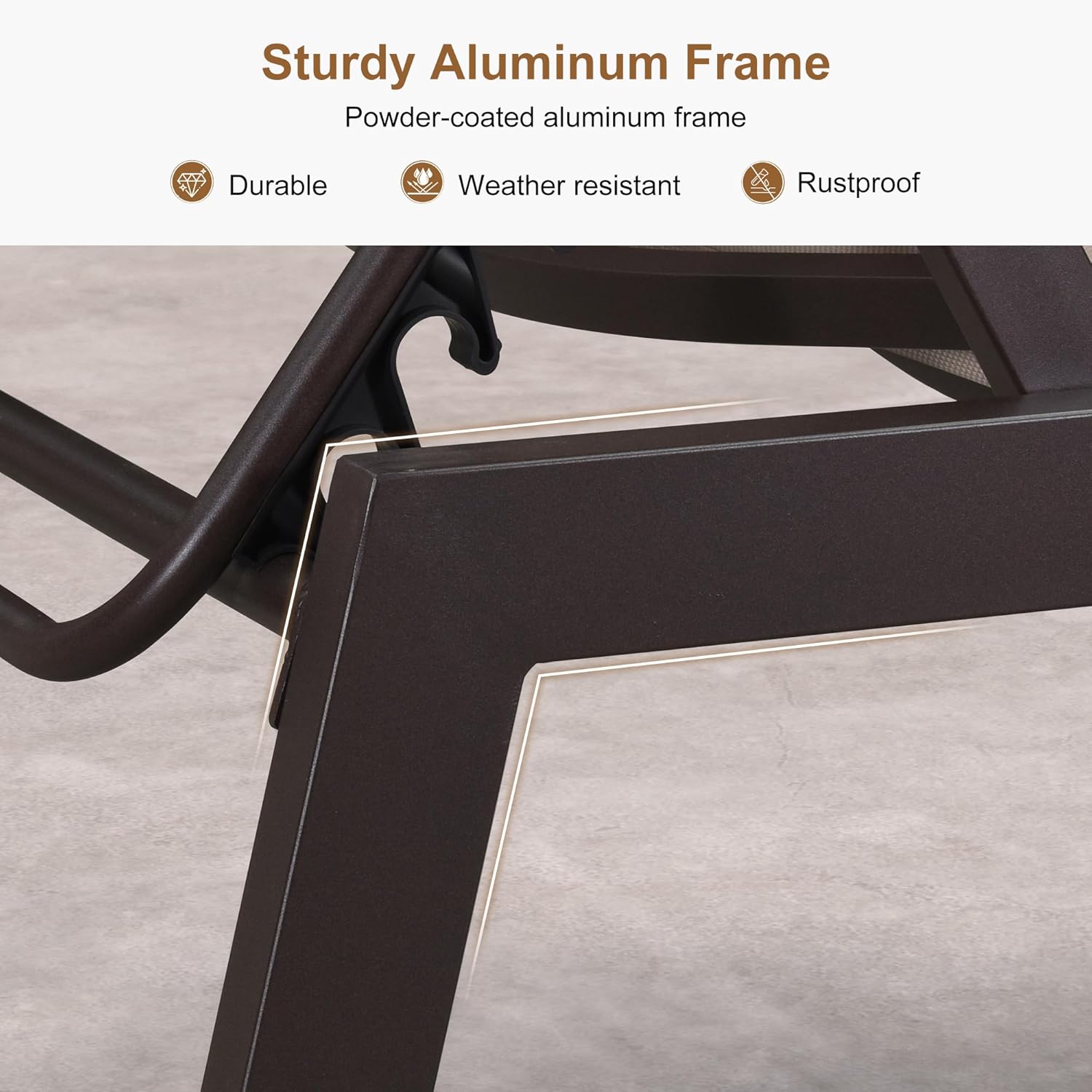 - STURDY FRAME: Rugged powder-coated aluminum frame, the outdoor chaise lounge is rust-proof and durable. Besides, the backrest has a triangular structure that can hold up to 330 pounds, providing you with reliable support.