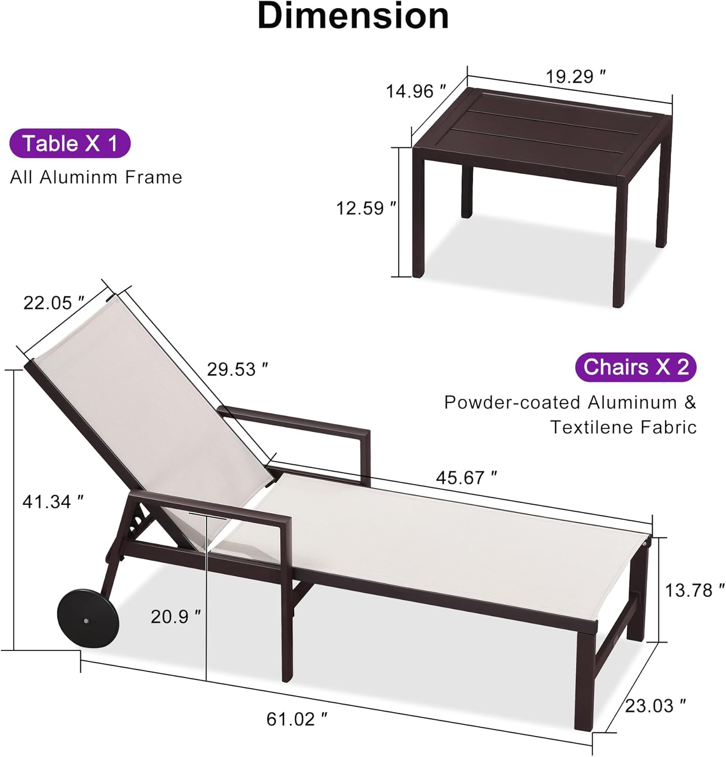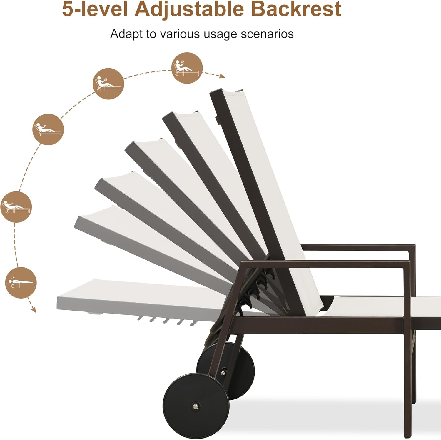 - CONVENIENT MOVING: The pool lounge chairs feature two back wheels, you can move the outdoor lounge chairs easily and start sunbathing anytime, anywhere.