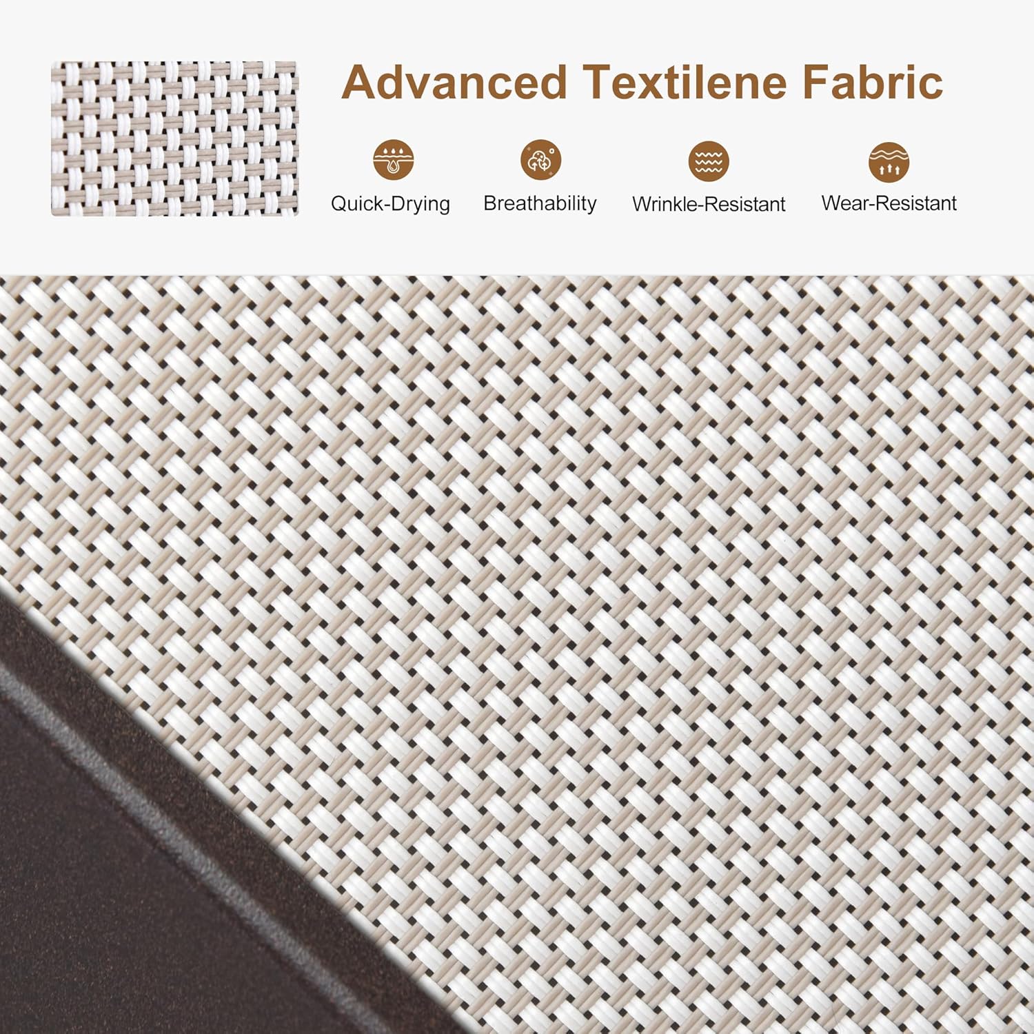 - COMFORTABLE FABRIC: This patio lounge chairs feature a sunbathing textilene design, providing a comfortable and relaxing lounging experience. Quick-dry and fade-resistant, perfect for poolside or patio use.