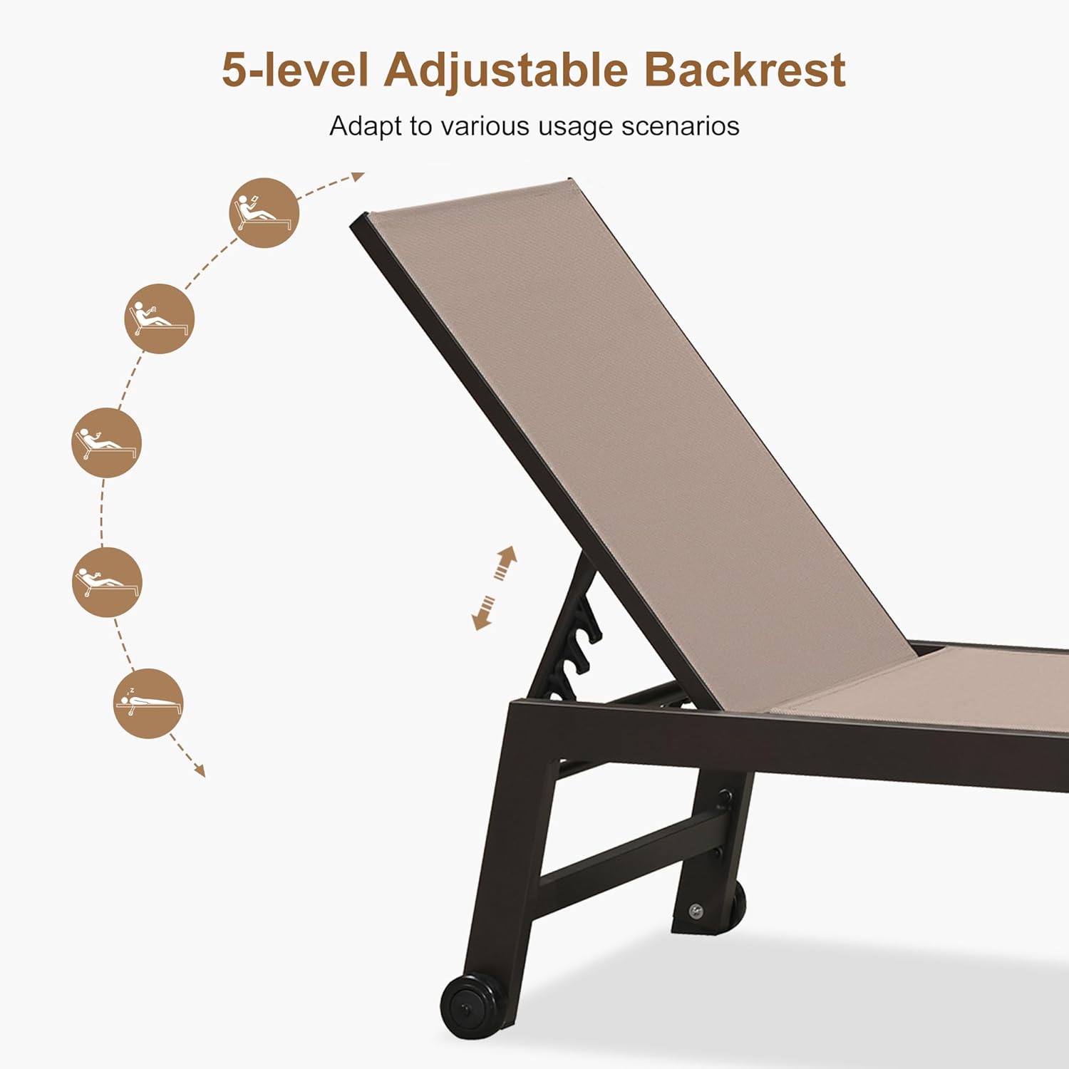 - CONVENIENT MOVING: The patio chaise lounger for outside feature two back wheels, you can move the lounge chairs for outside easily and start sunbathing anytime, anywhere.