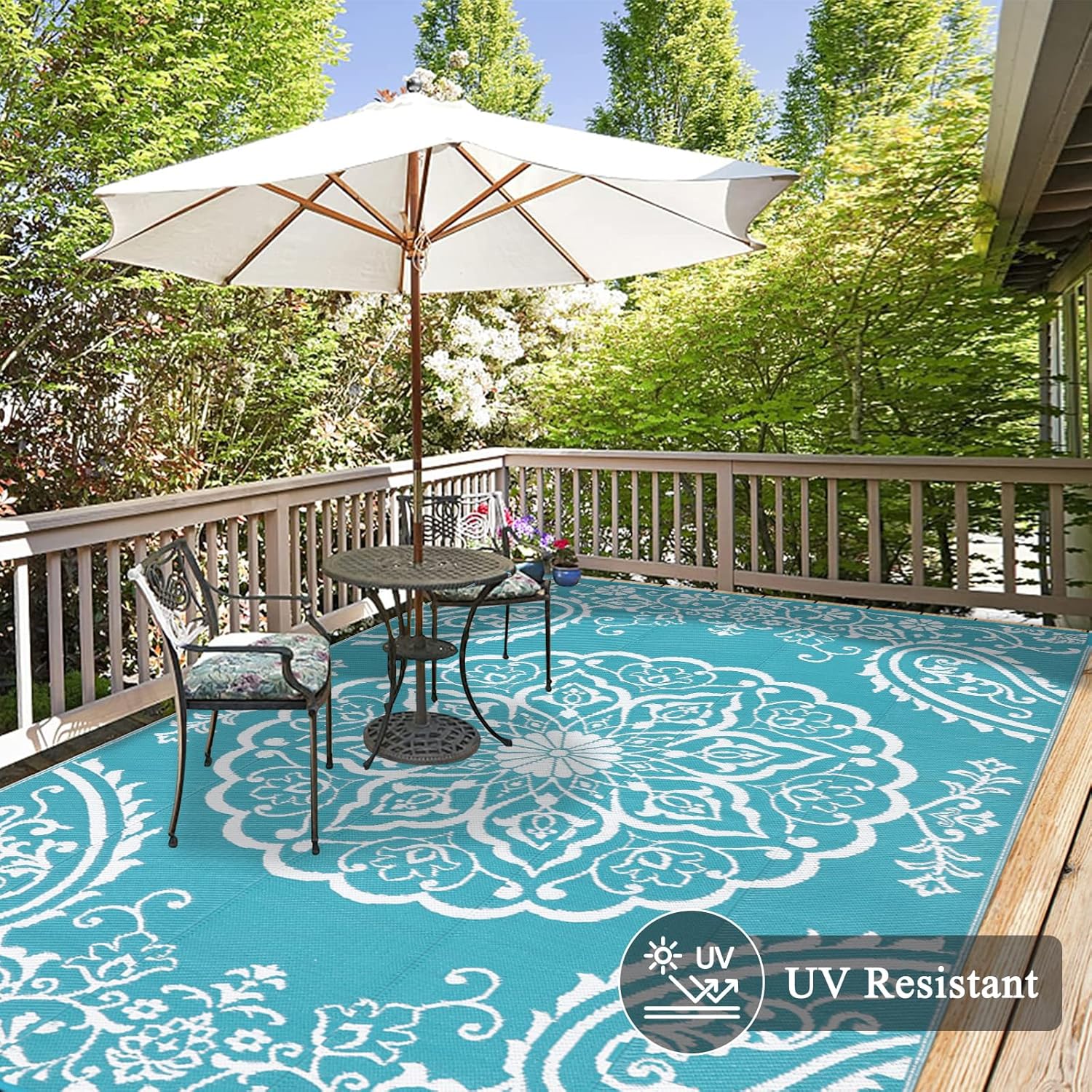 - Premium Quality: This outdoor patio rug is made of upgraded recyclable polypropylene material, which makes this outdoor carpet more durable, waterproof and no fading. UV coated for long lasting colors and heat treated edge to avoid fraying