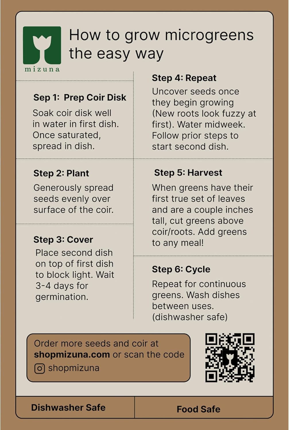 mizuna Microgreens Growing Kit – 2 Stackable White Ceramic Micro Greens Growing Trays (2x5x12 in), Coconut Coir, and Seeds for Stylish Indoor Micro Greens Growing