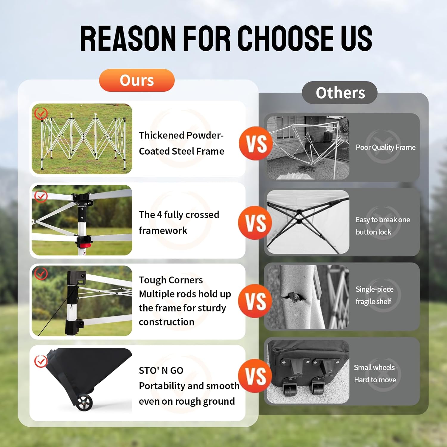 - SUPERIOR STABILITY: This 10x15 outdoor canopy features a thickened powder-coated steel frame, enhancing durability and stability. Designed to withstand various conditions, it includes heavy-duty stakes, ropes, and sandbags, ensuring reliable performance in harsh environments.