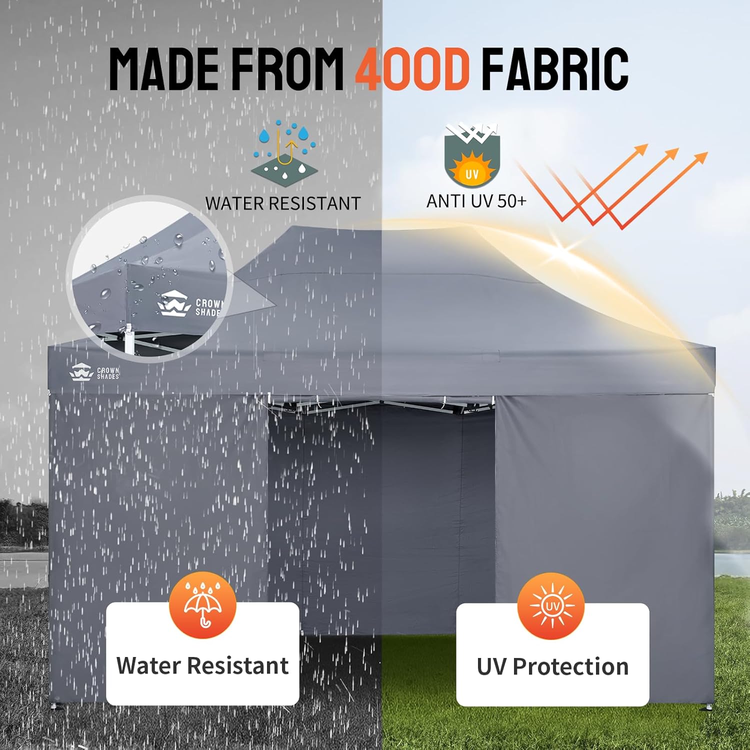 - ADVANCED MATERIAL EXCELLENCE: Made from durable 400D Oxford fabric for increased reflectivity, the heavy-duty canopy offers comprehensive waterproofing and UV protection exceeding SPF50+. It is perfect for providing shade at outdoor markets or sports events.