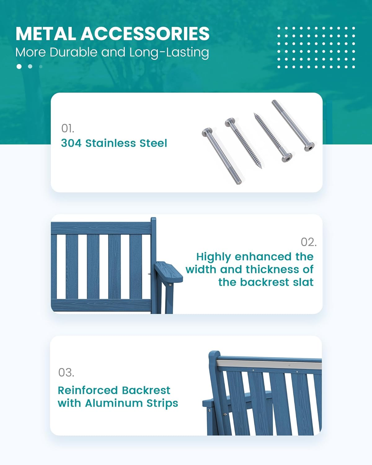 - High Weight Capacity: Tested to support up to 660 lbs, this outdoor bench is suitable for people of various body types and sizes. Its sturdy structure and premium materials ensure lasting performance.