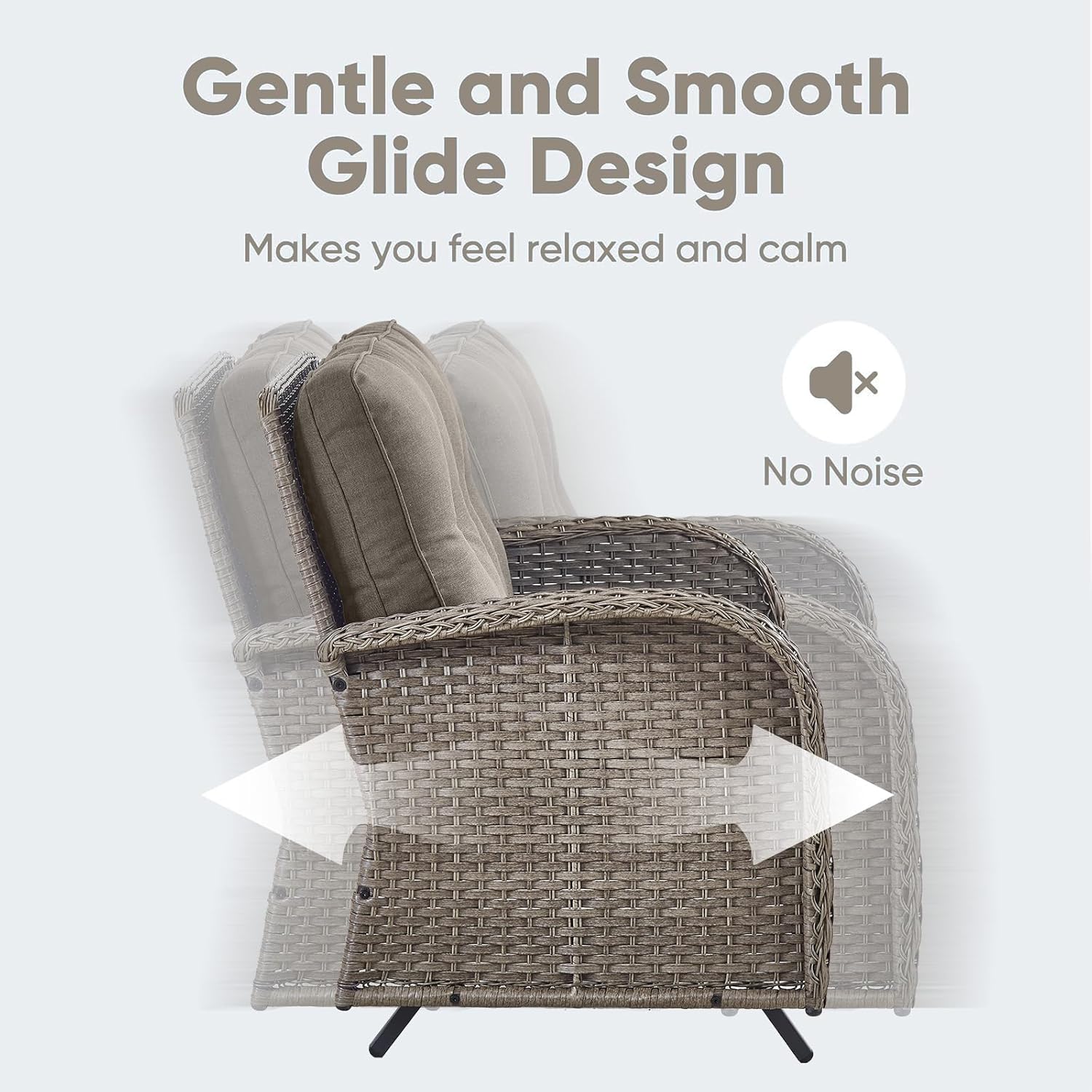 5 Piece Outdoor Patio Furniture Set with Deep Seating Swivel Rocker Chairs Loveseat and Rattan Coffee Table Outdoor Conversation Sets for Deck Backyard Poolside,Gray Wicker Gray Cushion