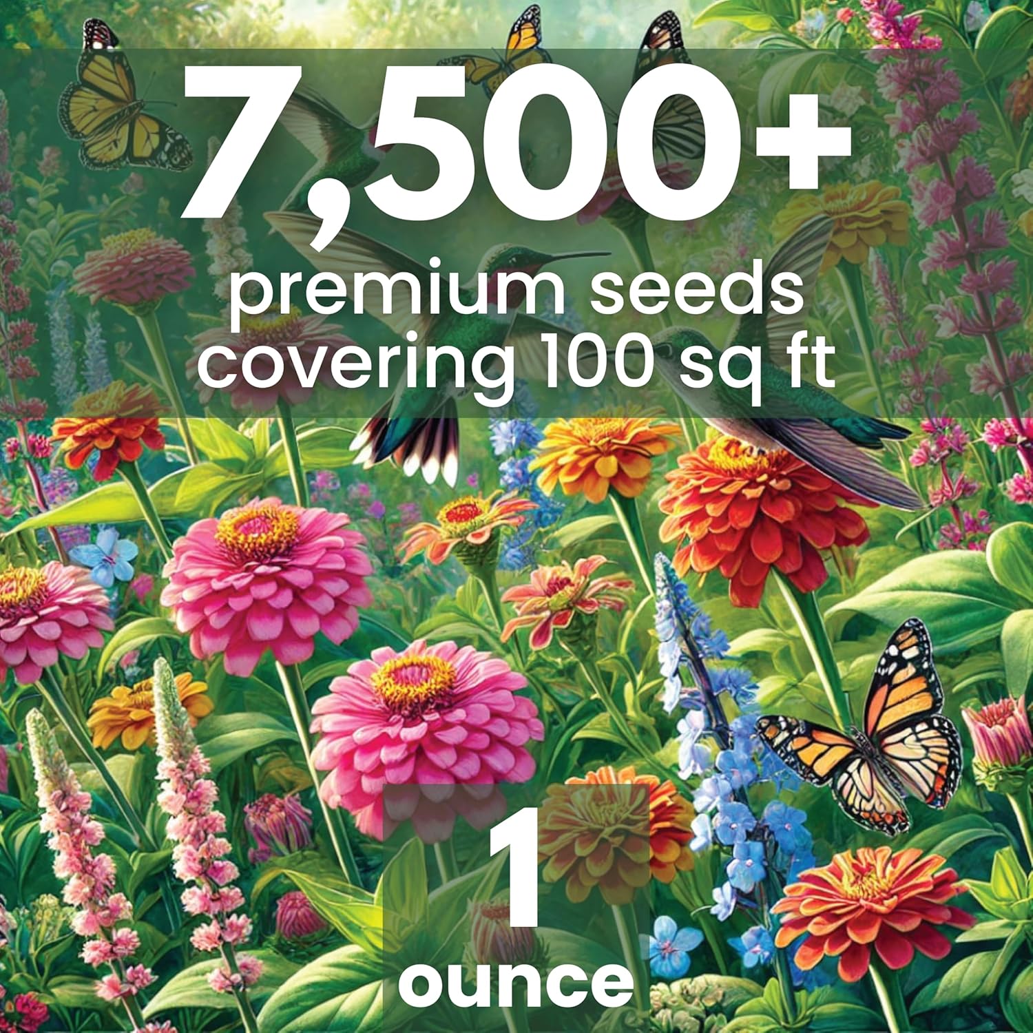 Hummingbird Butterfly Mix - Large 1 Ounce Packet - 7,500 Flower Seeds for Planting - Wildflower Mix